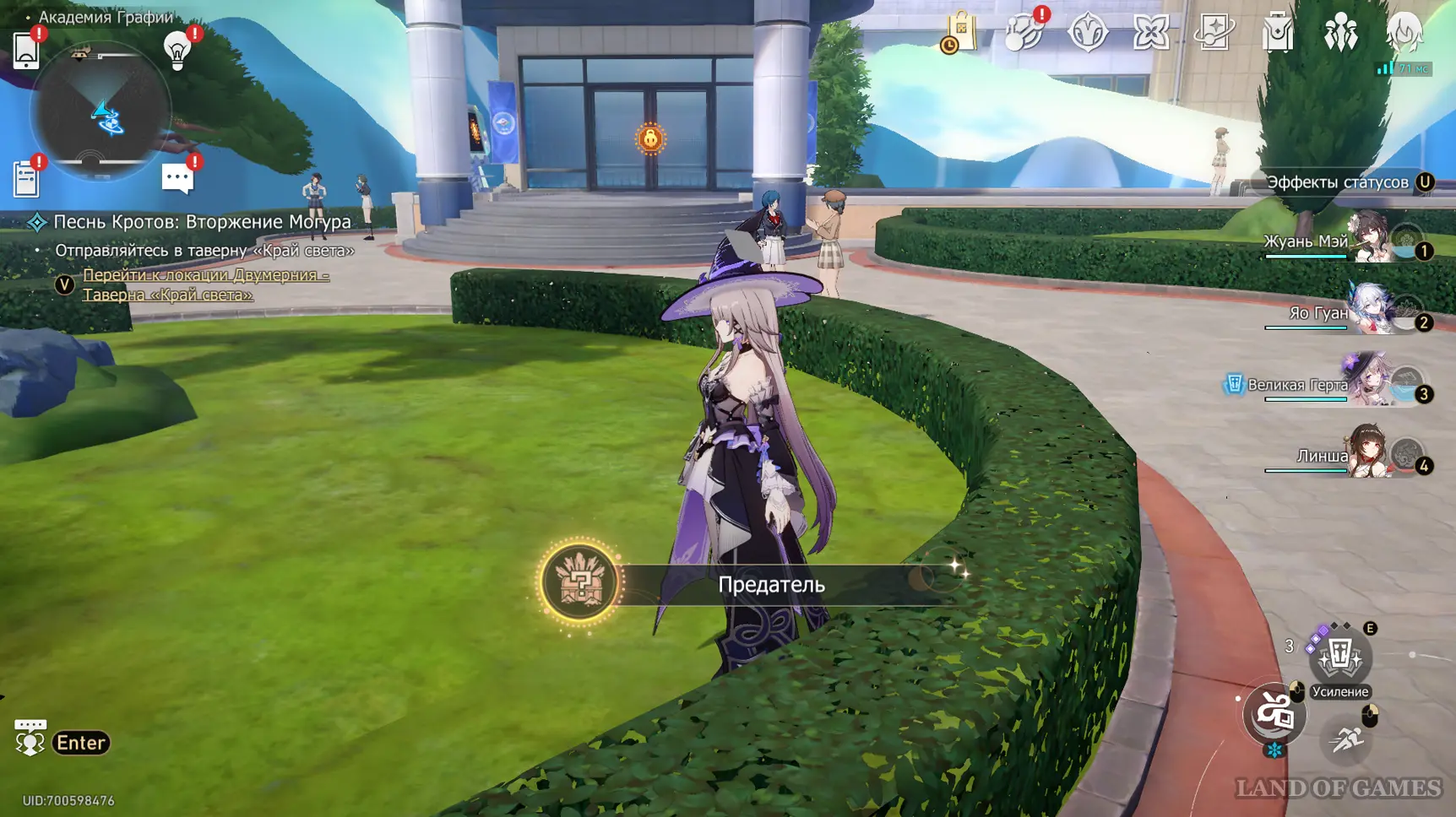 Завершив основной сюжет, вернитесь в атриум академии и поговорите с пушистым папарацци под изогнутым бонсаем. Когда тот исчезнет, атакуйте пожелтевшее дерево, появившееся на газоне впереди. Так вы не только найдете первый шерстяной товар на карте, но и получите ачивмент «Предатель».