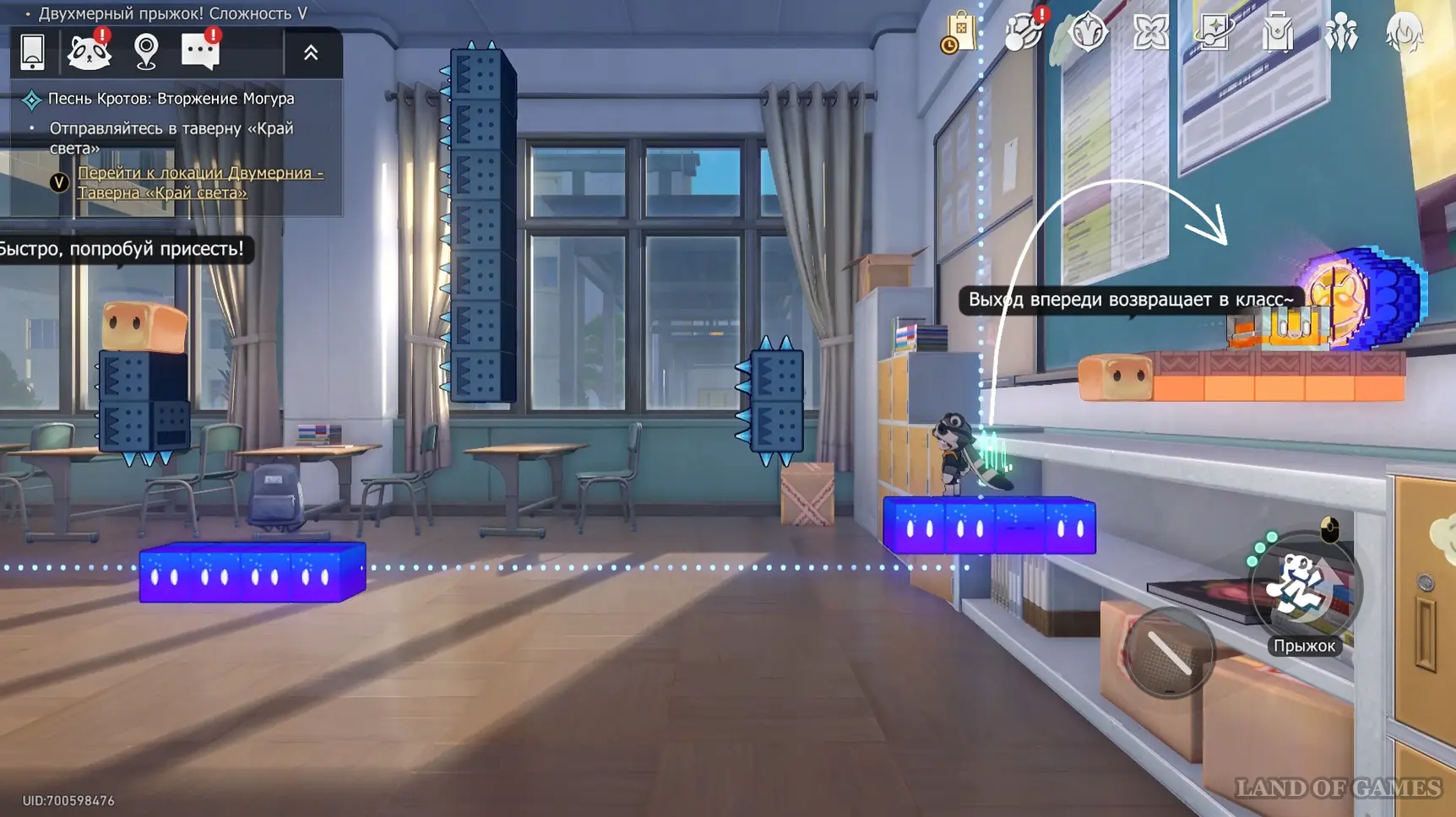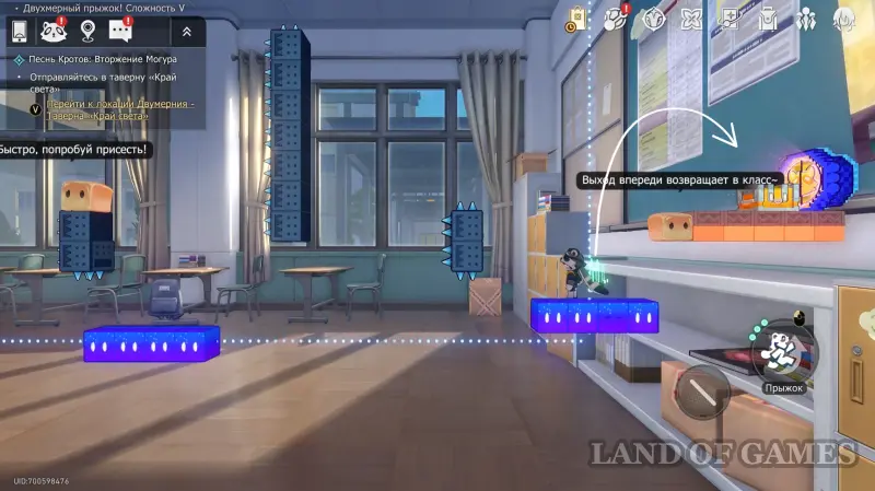 Переместитесь на вторую карту и преодолейте длинную полосу препятствий, тянущуюся через весь класс, — в конце, перед самым выходом, вы сможете забрать второй сундучок.