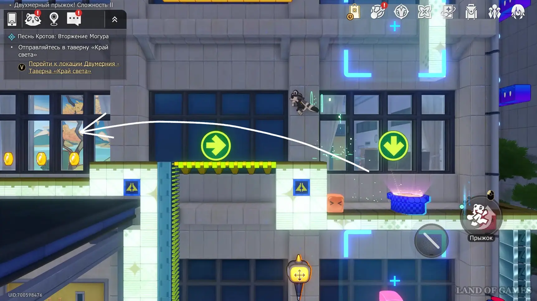 Войдите в трубу на юго-восточном углу атриума и начните испытание Двухмерного прыжка.