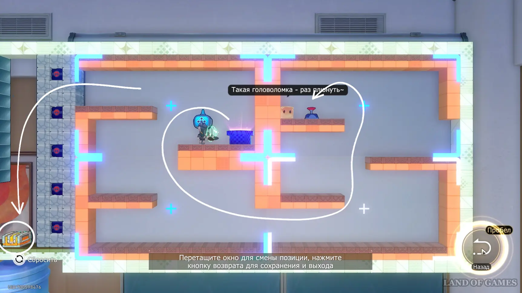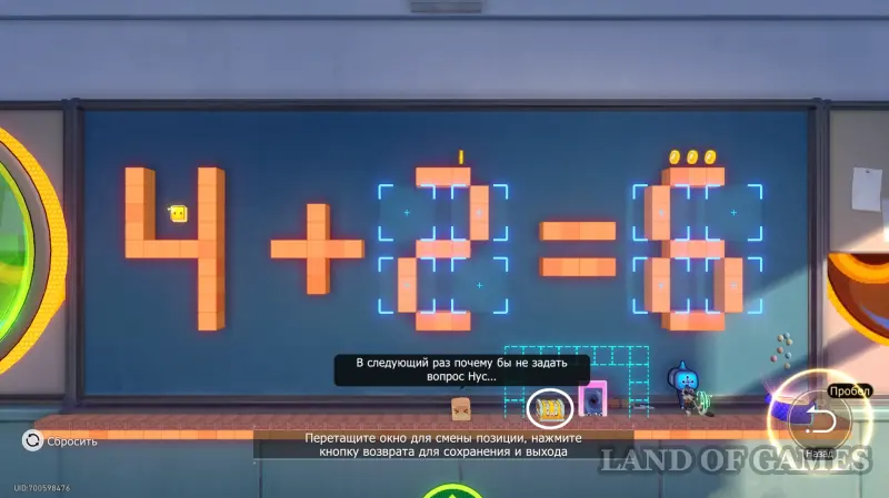 Вы сразу окажетесь на этапе с головоломкой, за решение которой откроется доступ к сундуку и порталу. Составьте экраны так, чтобы получился пример «4+2=6».