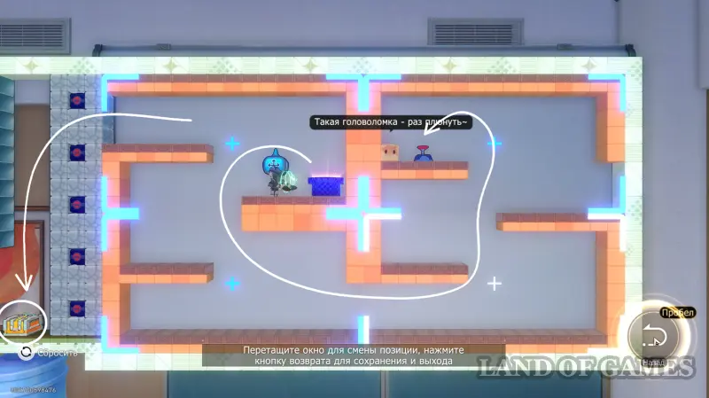 В самой дальней части уровня, прямо над выходом, вас ждет сундучок. Чтобы его забрать, настройте пазл на доске (сделав злой смайлик, как показано на втором скриншоте выше).