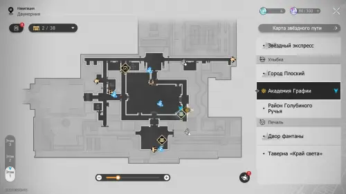Академия Графии является художественным учебным заведением, которое было основано потомственными живописцами Двумернии и содержит в себе массу уникальных творческих инсталляций. Доступ к данной локации у вас откроется в ходе квестовой цепочки «Добро пожаловать в утопию!», однако, мы советуем вам взяться за ее исследование уже после прохождения всех миссий линейки, чтобы вы смогли без проблем посетить все уголки области.