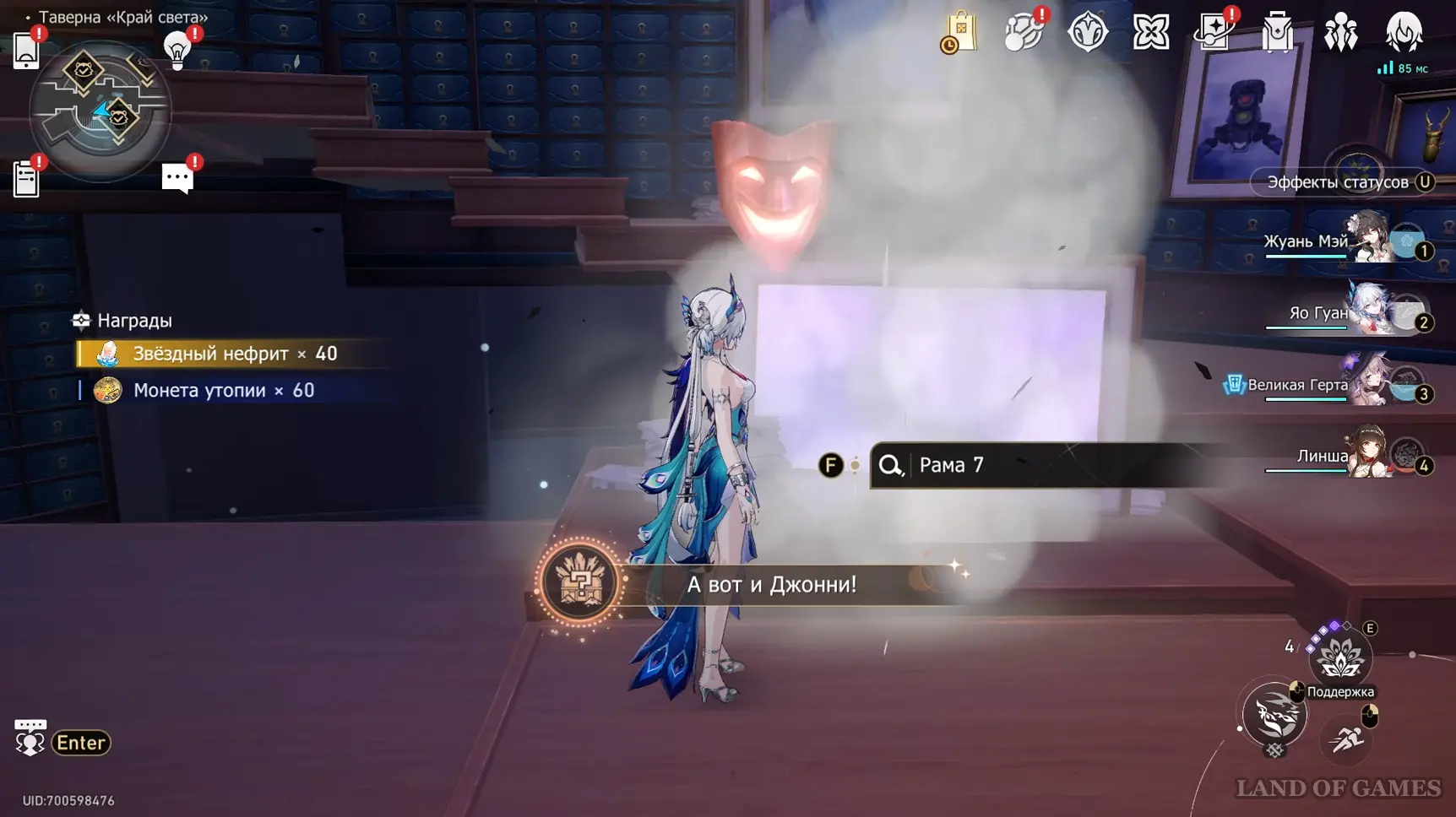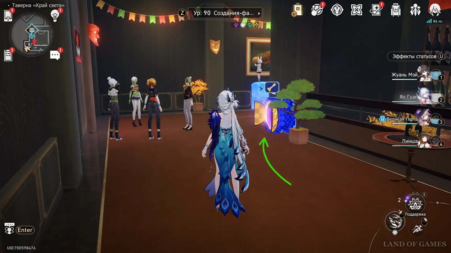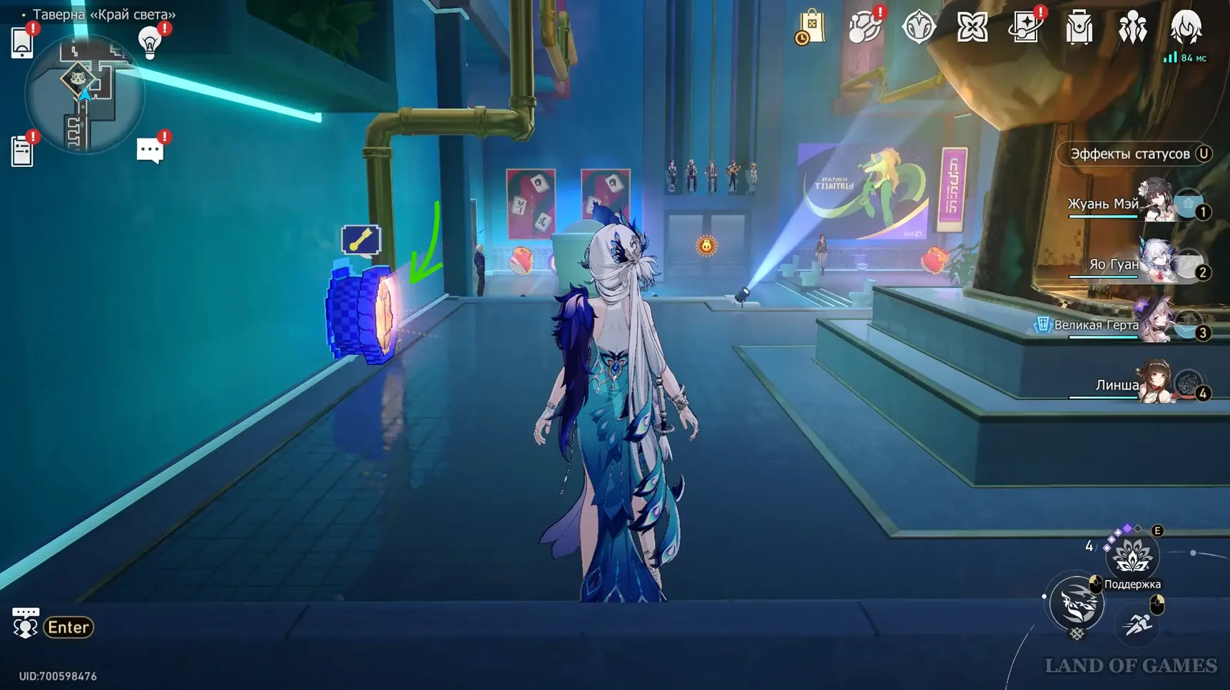 Телепортируйтесь к якорю «Убийственная шутка» на 2-м этаже указанной области, а затем бегите вперед по больничному коридору до самого конца и сверните в комнату слева. Еще раз поверните налево и выйдите на сцену. Подойдите к зрительскому залу, и вы обнаружите тут Юньли.