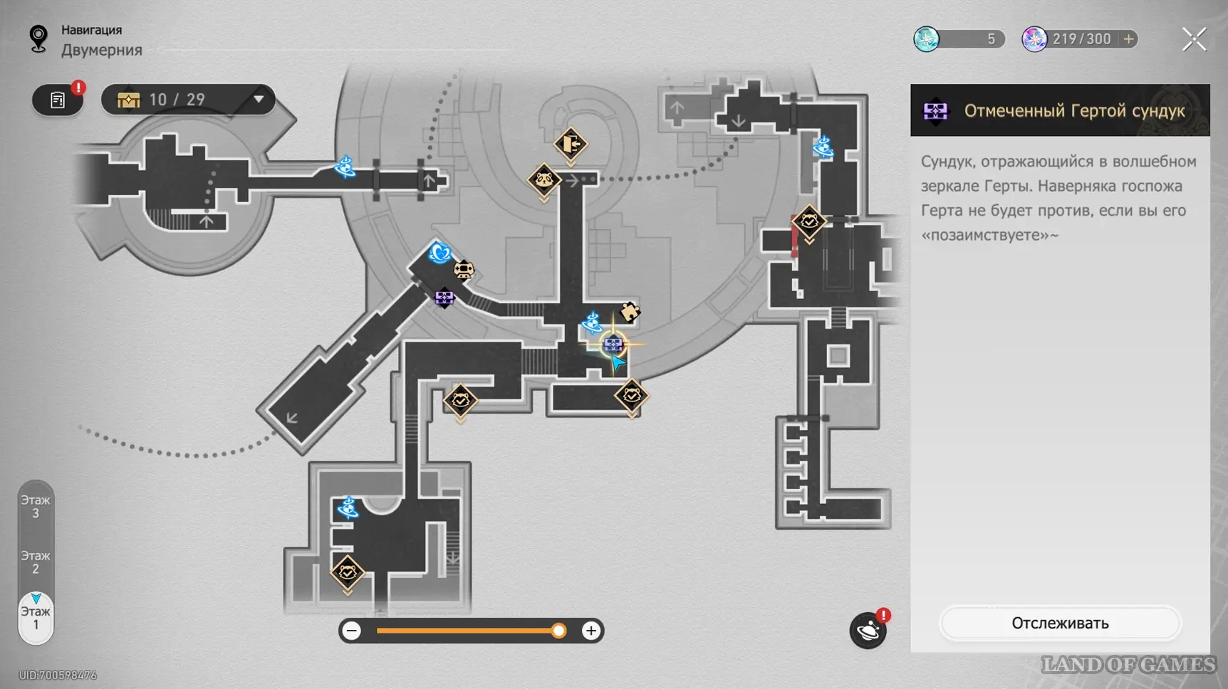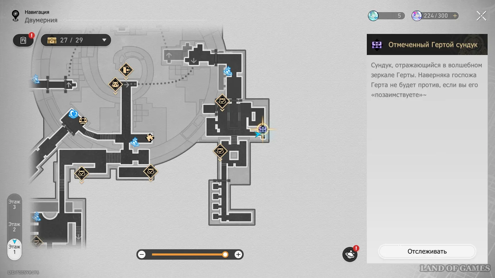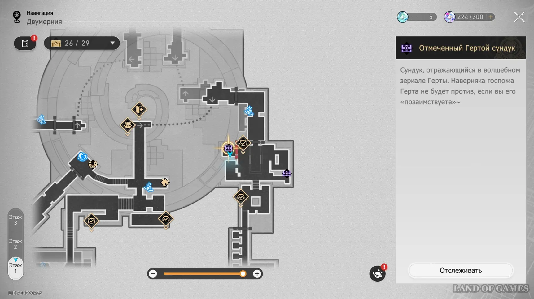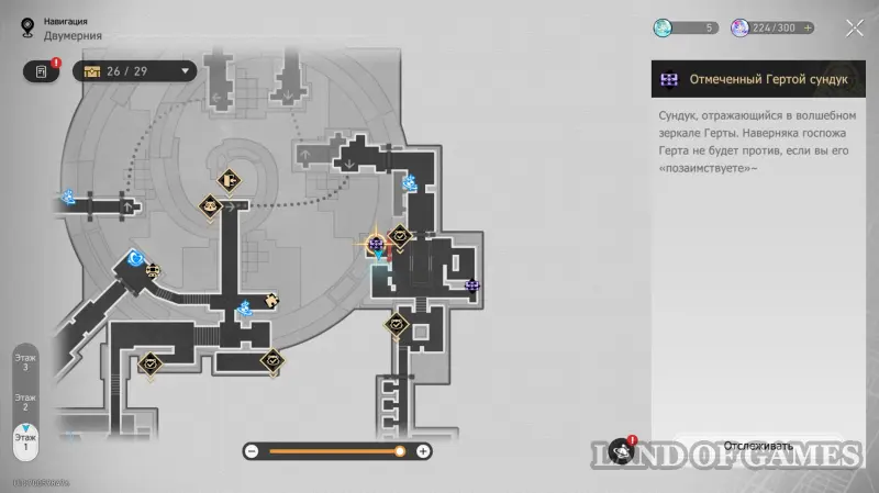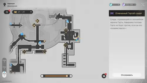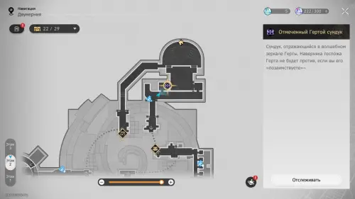 На интерактивной карте в этой области отмечен скрытый сундук, который можно получить за решение музыкальной загадки Странная мелодия «Вариация рая: Гондола-призрак». Подробный маршрут к ней, а также правильную последовательность нот мы разобрали в отдельном гайде.