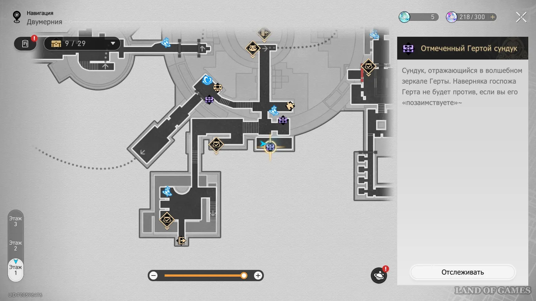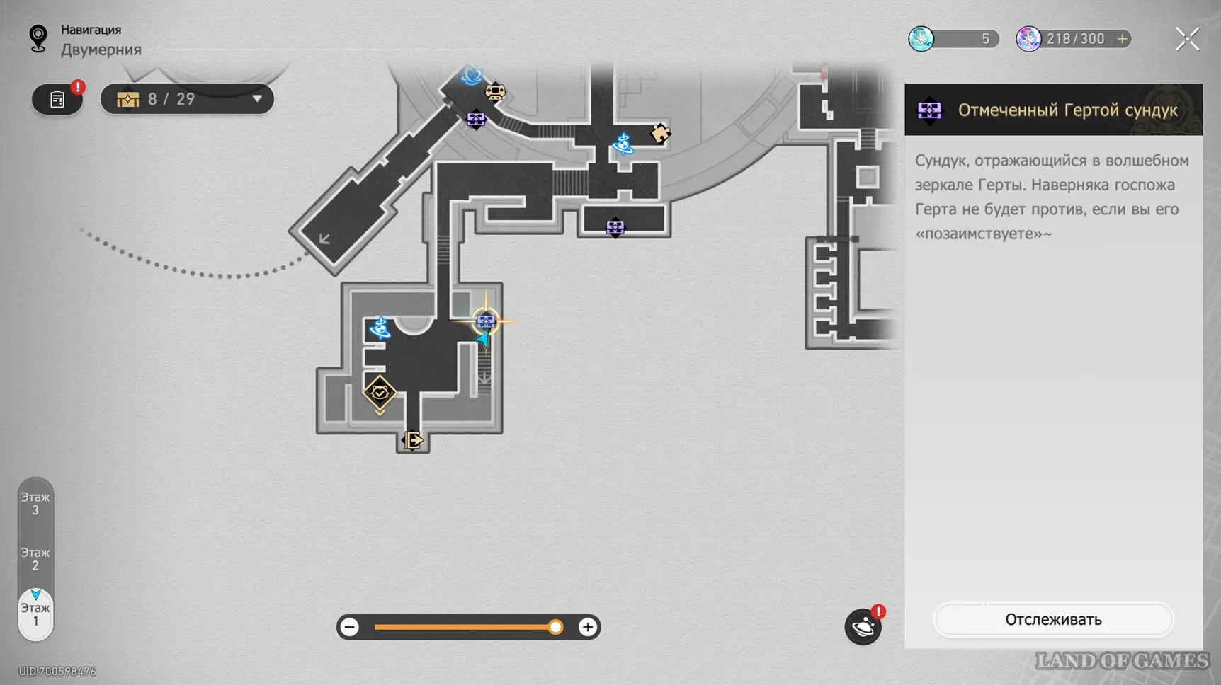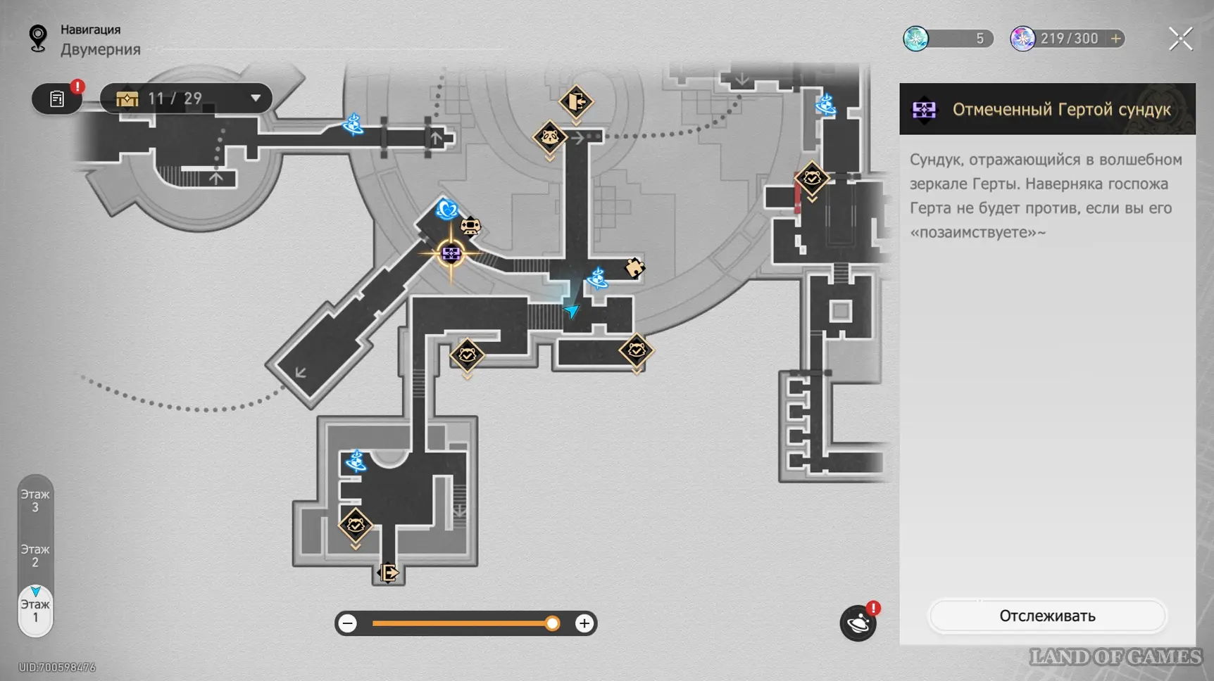 На интерактивной карте в этой области отмечен скрытый сундук, который можно получить за решение музыкальной загадки Странная мелодия «Вариация рая: Гондола-призрак». Подробный маршрут к ней, а также правильную последовательность нот мы разобрали в отдельном гайде.