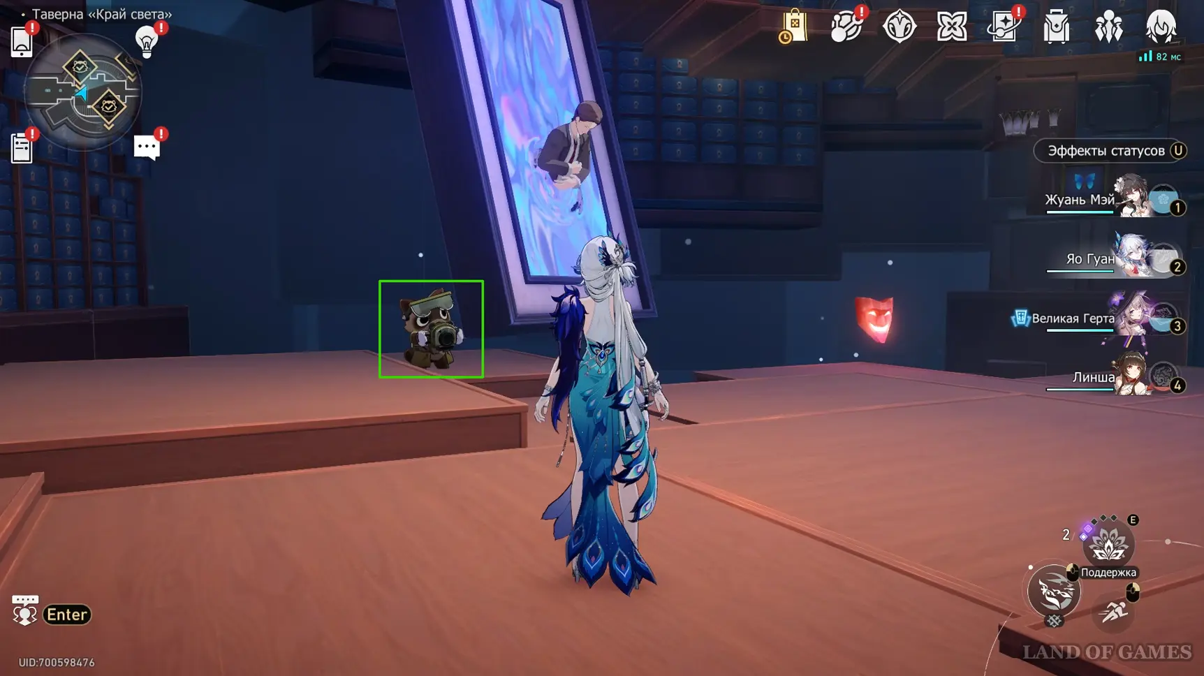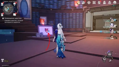 Пробежав на юг от места получения прошлого ларца и ударив несколько раз огромный звездный нефрит, вы переместитесь в хранилище Искорки (телепорт около Великого тайника). Остановитесь возле портрета с человеком, чтобы обнаружить за ним енота.