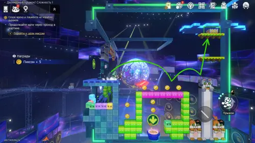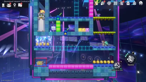 А чтобы получить второй трофей, убедитесь, что рычаг в верхней половине карты прожат влево, а после спускайтесь вниз через участок под правым выходом. Если все сделано правильно, снизу будет только розовый мостик над шипами, позволяющий пройти к награде.