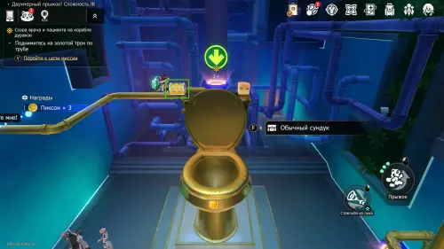 Чтобы закончить с Двухмерными прыжками в Великом тайнике, проходим в трубу за роскошным сундуком на верхнем ярусе хранилища.