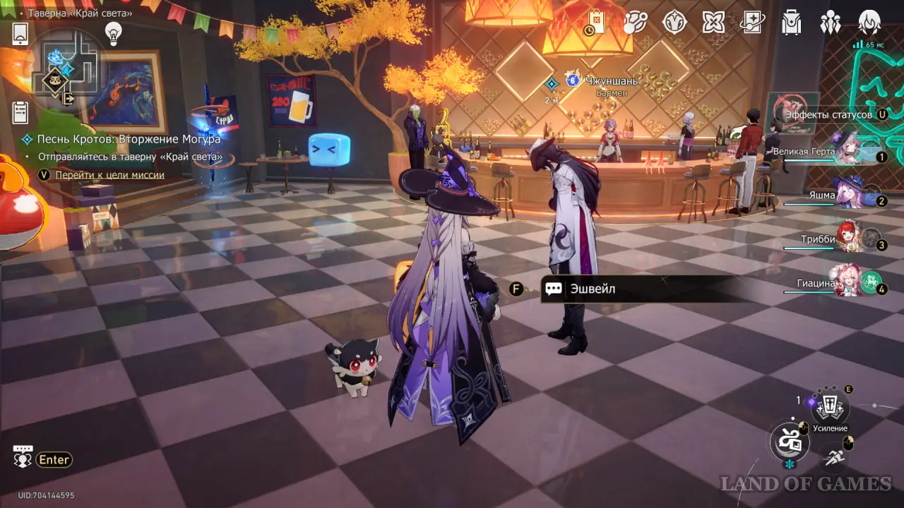 Отправляйтесь в лобби таверны «Край света» и поговорите с Эшвейлом.