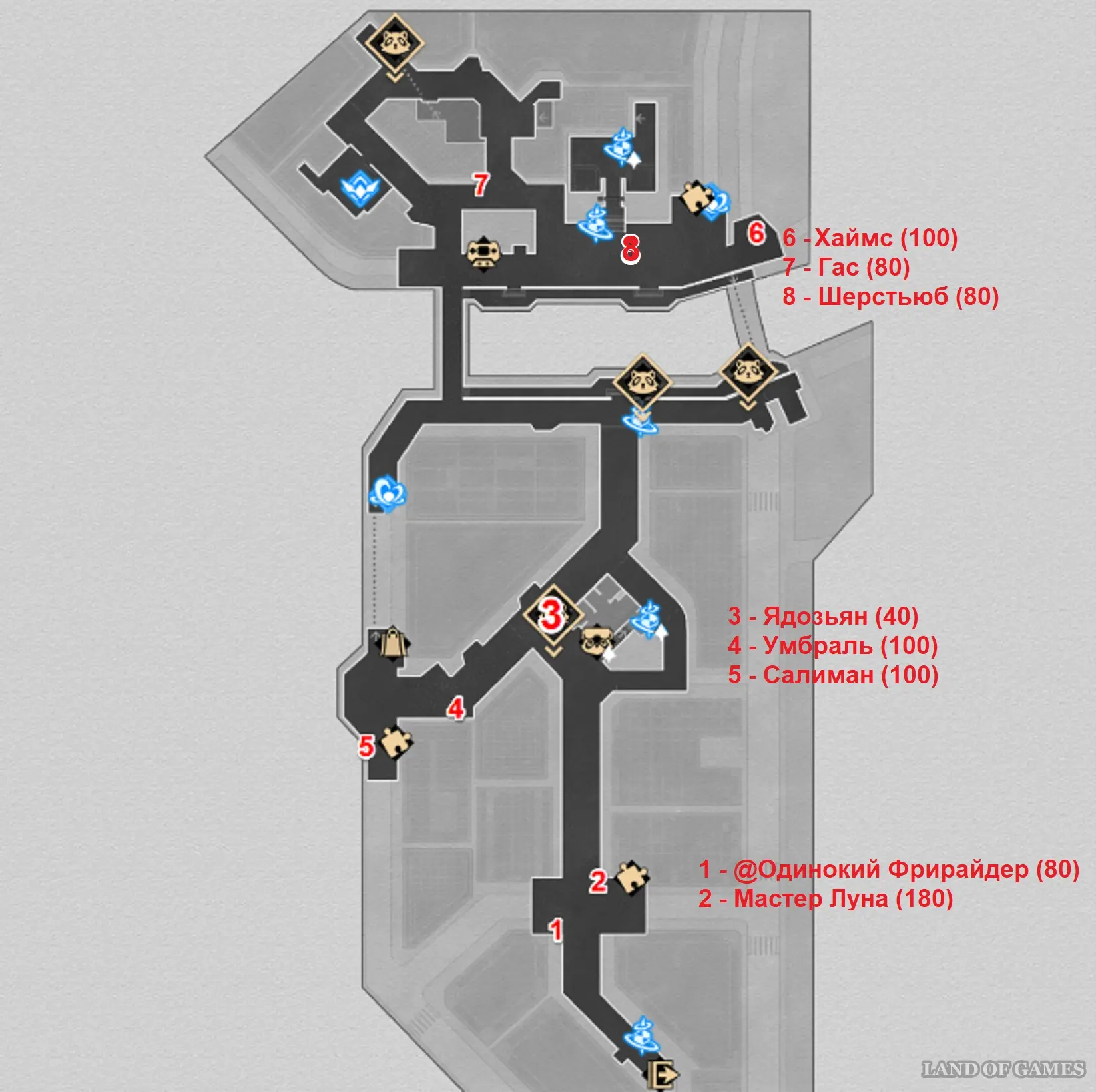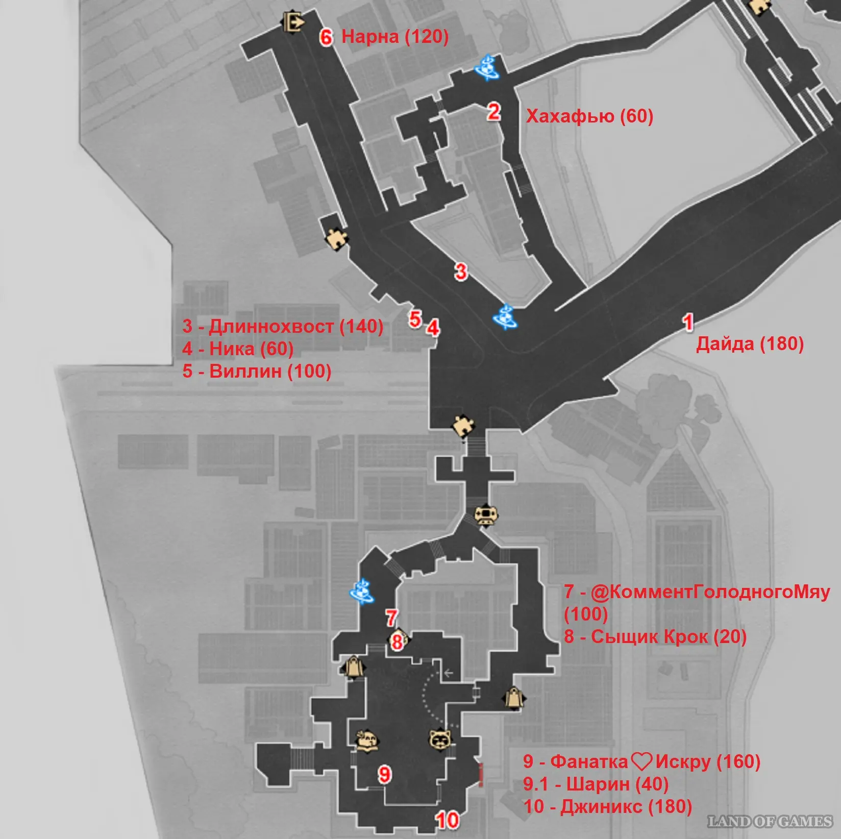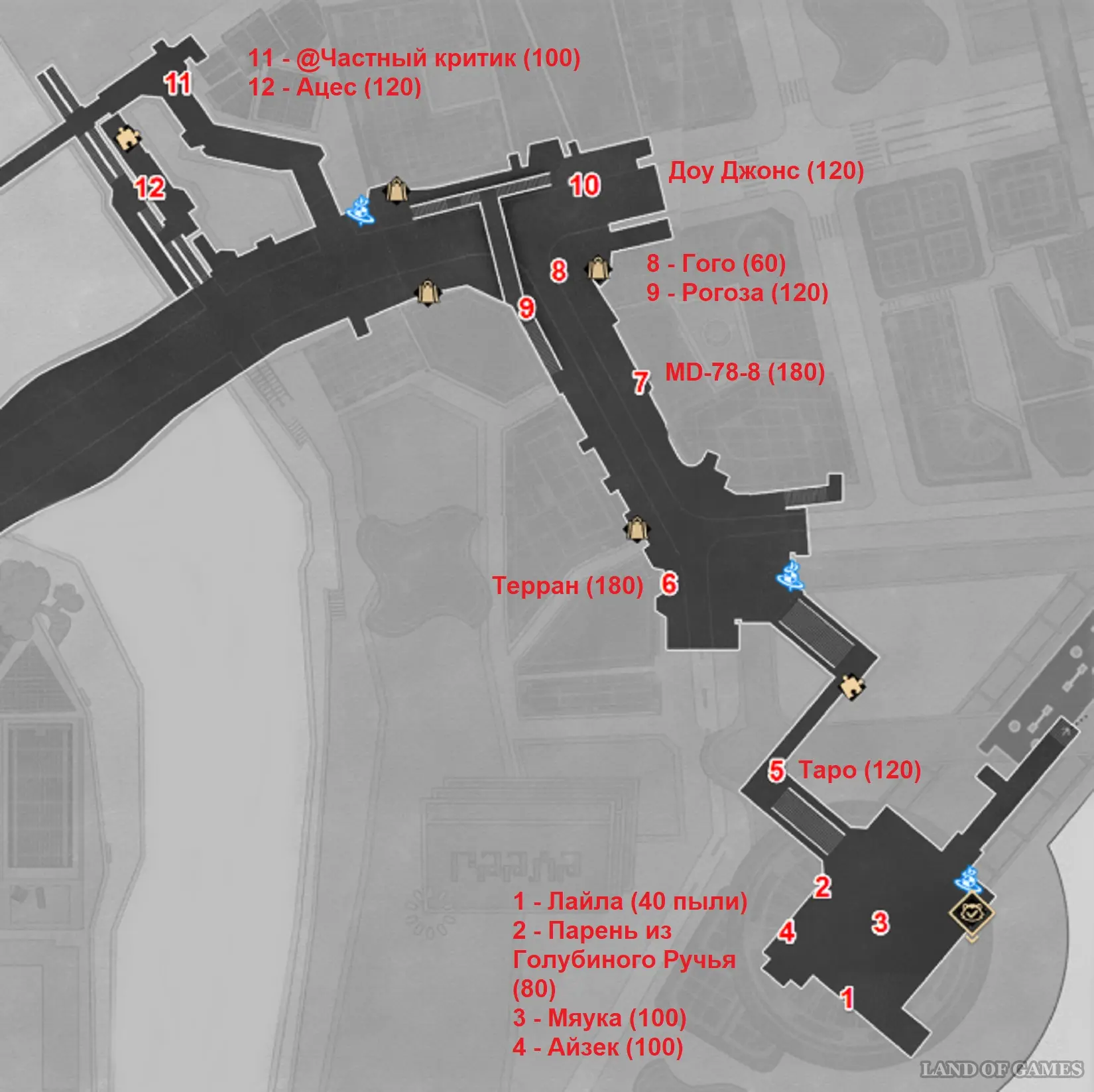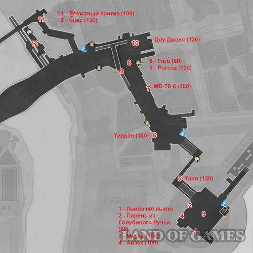 | Номер на карте | Имя | Боевая пыль в награду |