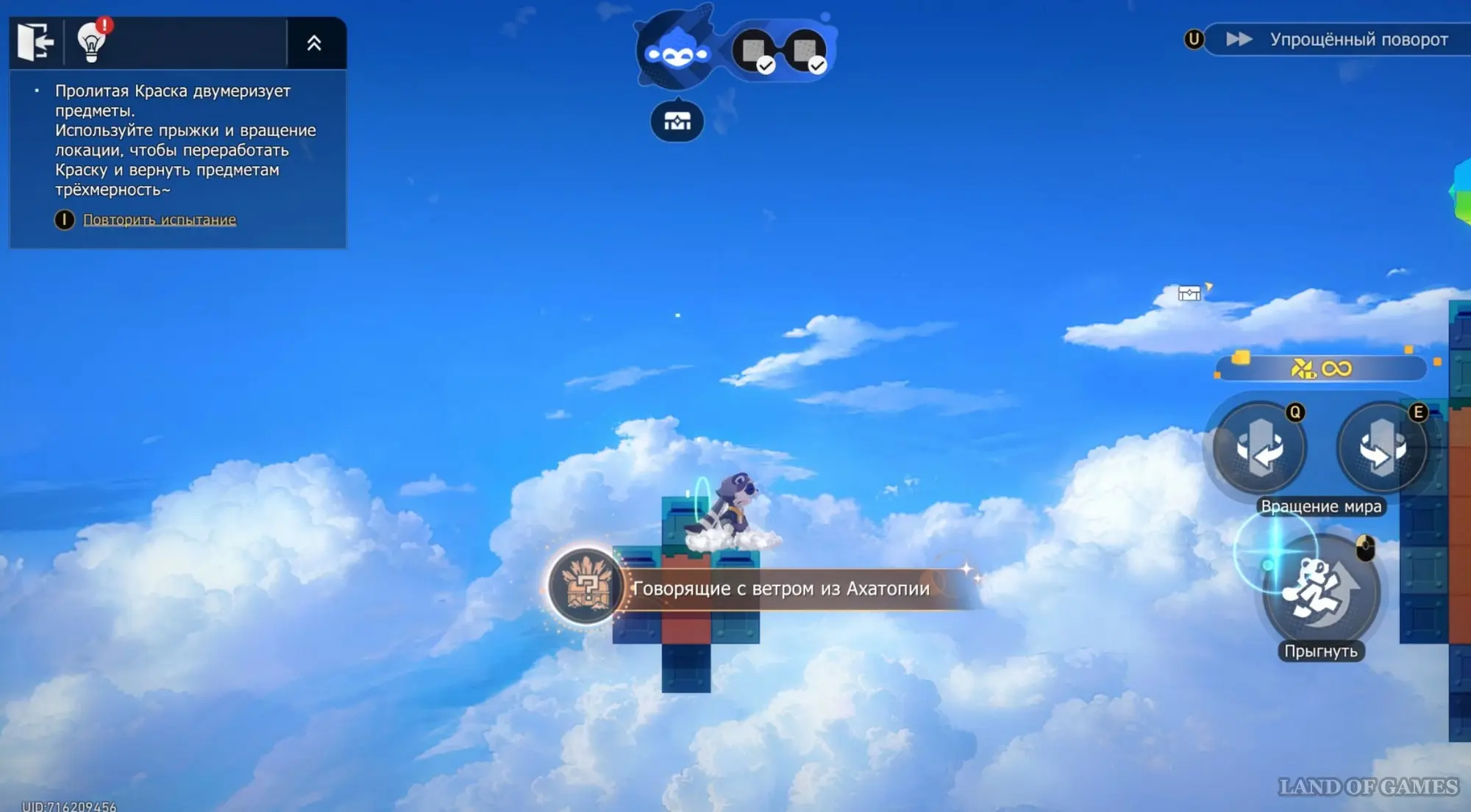 Примечание: Кстати, если вы совершите прыжок и прямо во время него покрутите мир, то тут же откроете ачивку «Говорящие с ветром из Ахатопии».