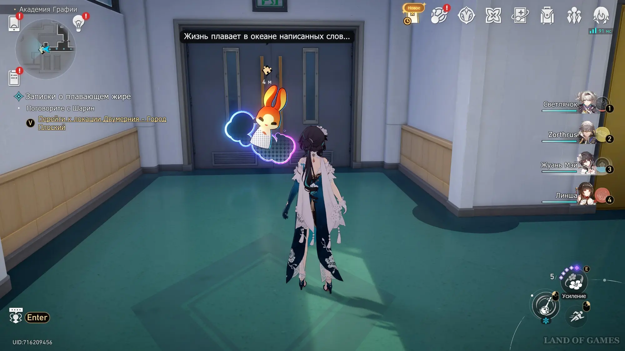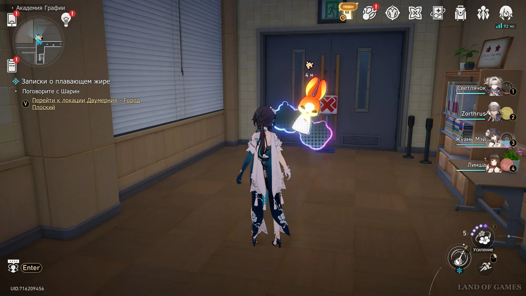 Телепортируйтесь к якорю «Фойе главного корпуса» на 1-м этаже указанной области, а потом начните бежать направо по коридору до самого конца, и здесь вы обнаружите рыжего зайчика – взаимодействуйте с ним для начала испытания.