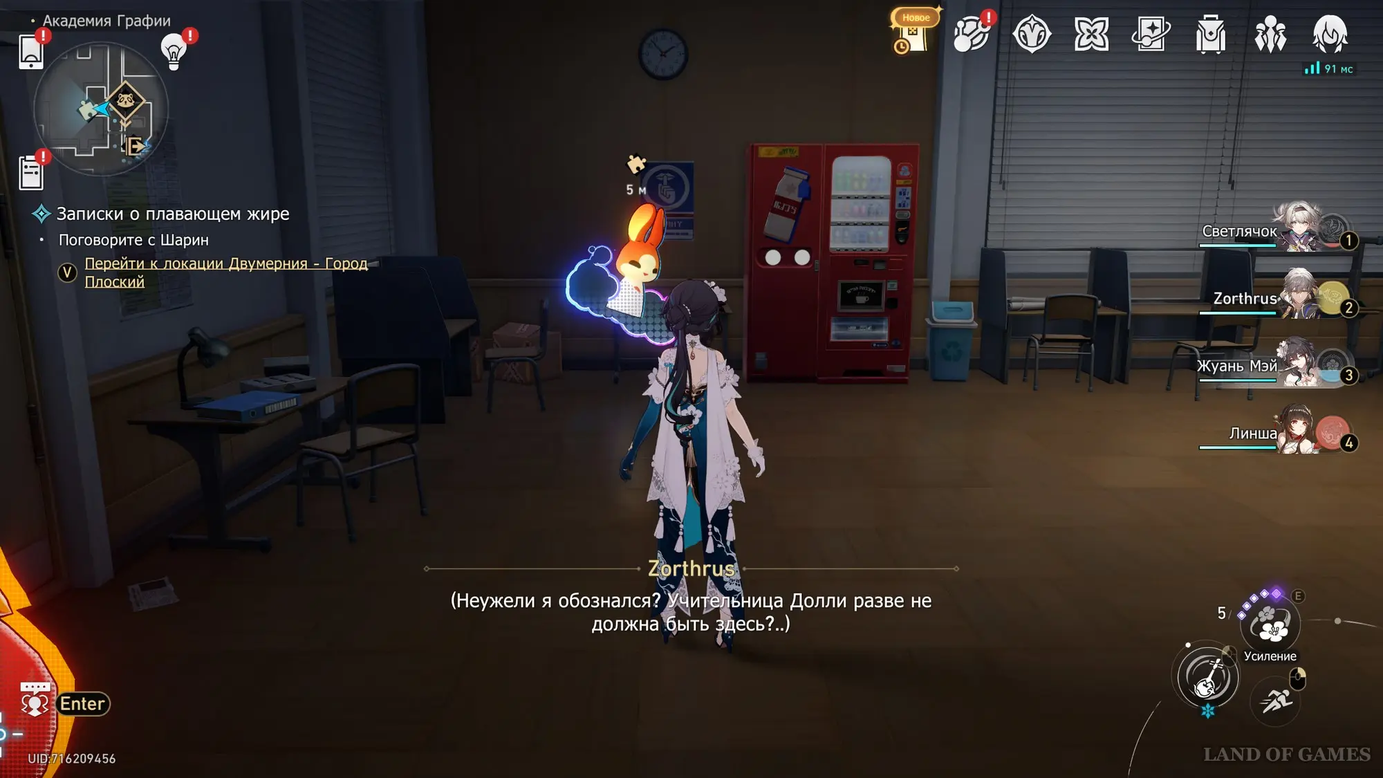 Телепортируйтесь к якорю «Холл учебного корпуса» на 1-м этаже академии, а затем начните бежать на восток по коридору до самого конца, и вскоре вы увидите перед собой рыжего зайца.