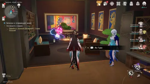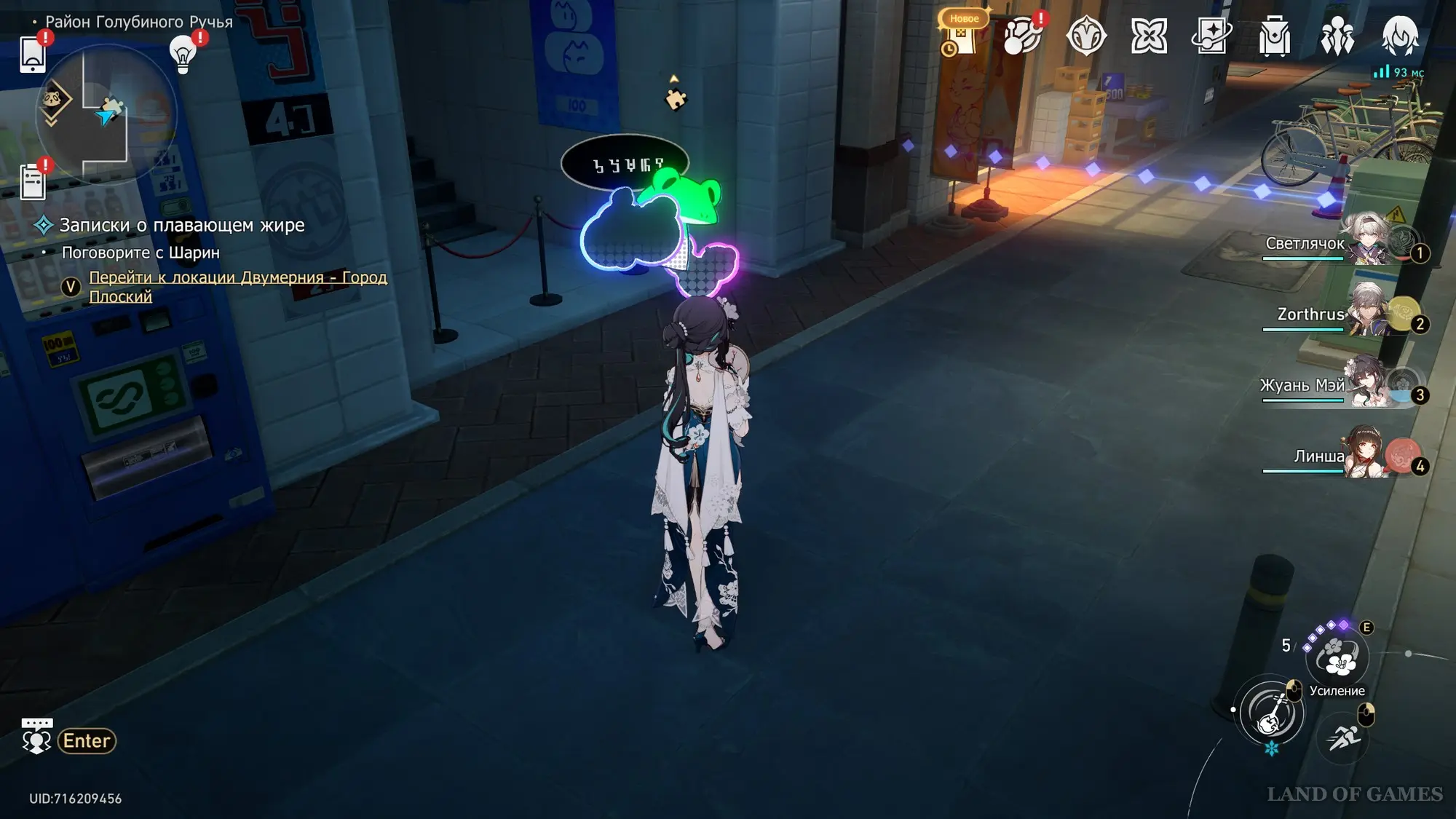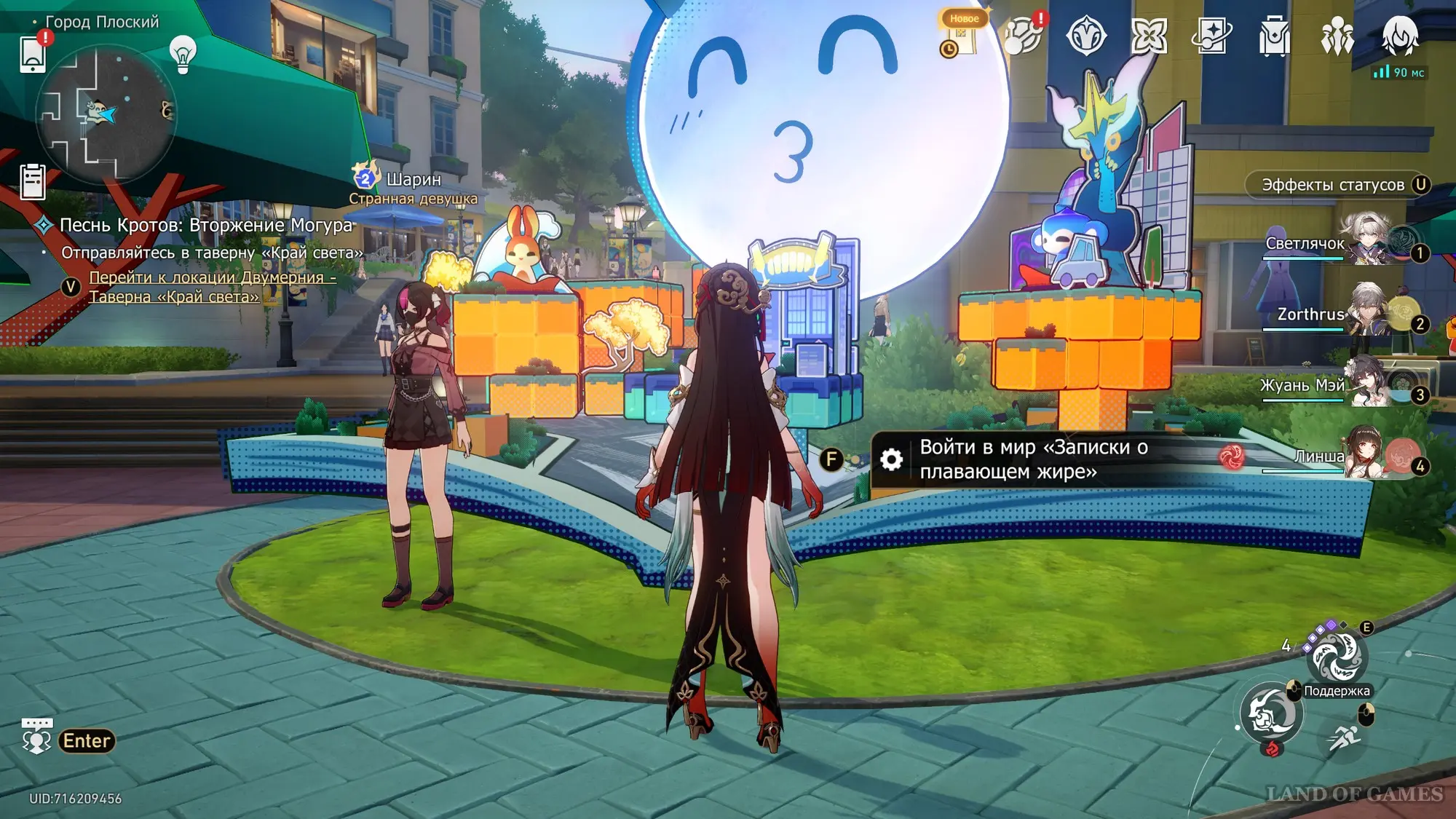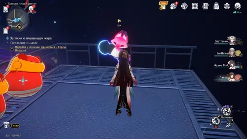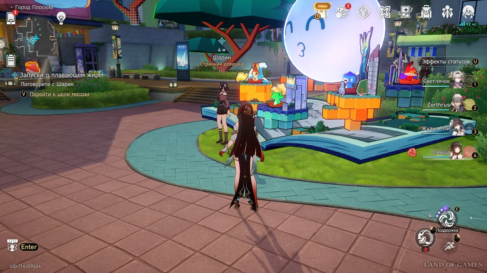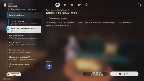 Помните о квесте «Записки о плавающем жире», который появился у вас после решения 4-х головоломок с двухмерным поворотом? Найдите его в журнале миссий и начните отслеживать, а потом переместитесь к якорю «@Площадь развлечений» в Городе Плоский. Затем отыщите здесь Шарин и поговорите с ней.