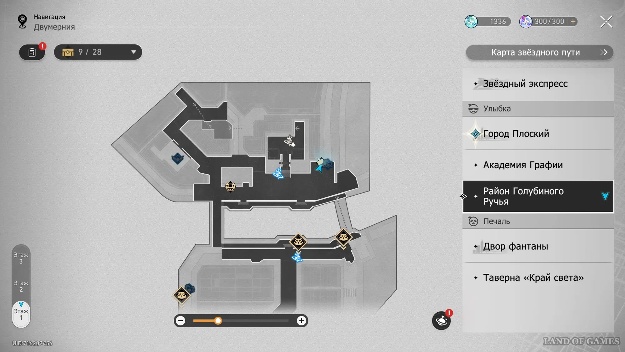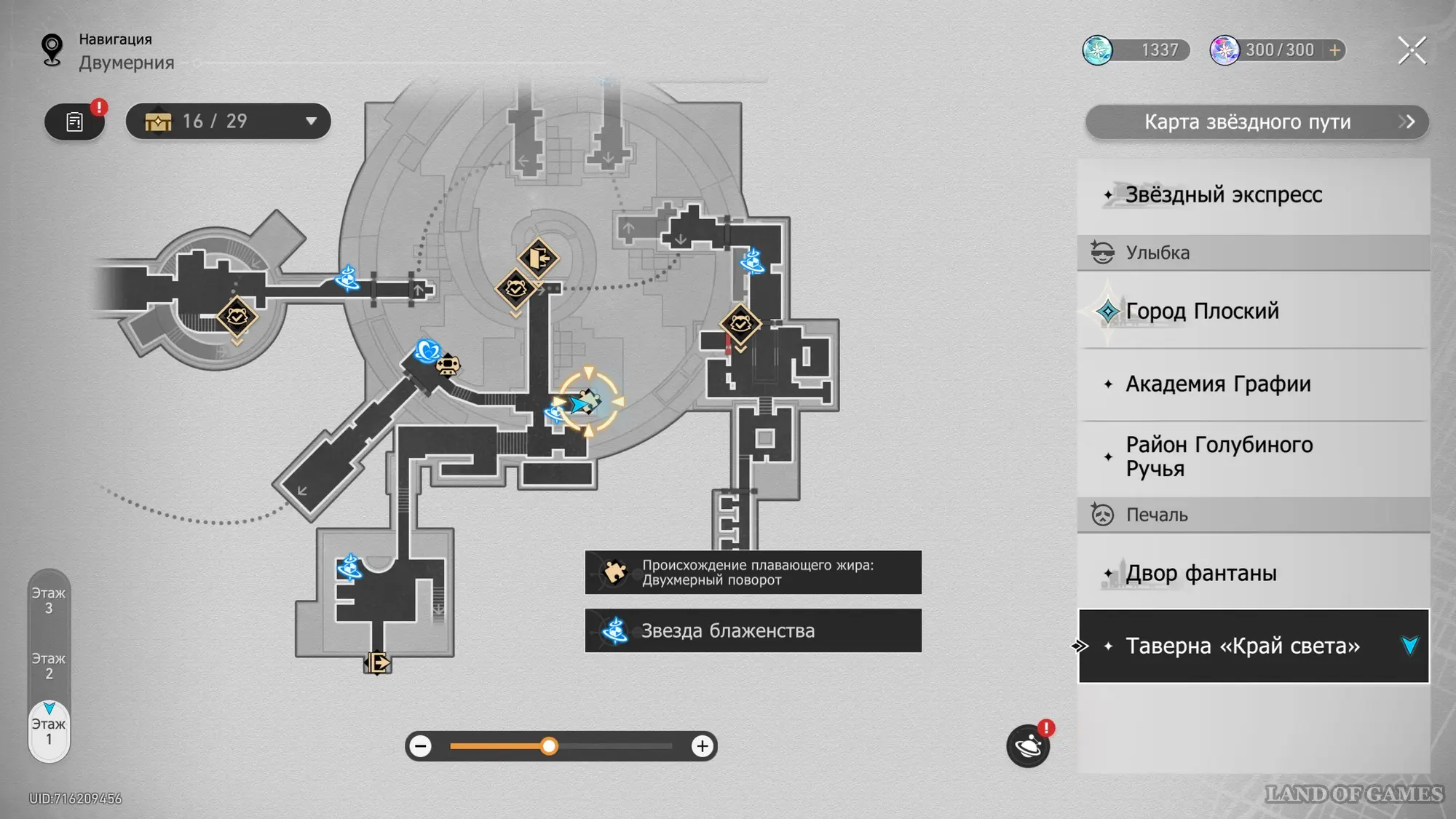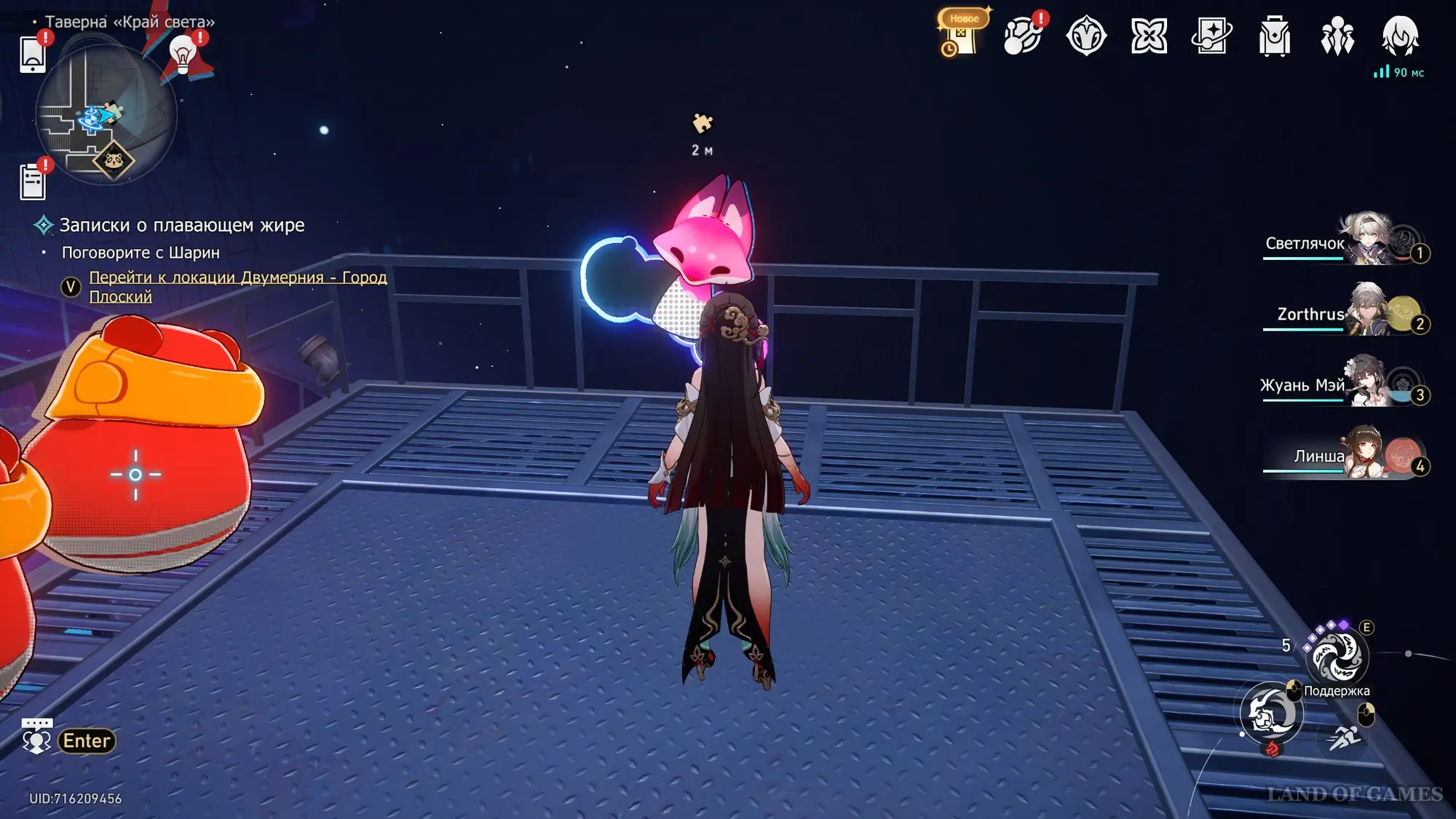Переместитесь к телепорту «Звезда блаженства» на 1-м этаже указанной области и сразу же поверните камеру вправо – возле ограждения вы обнаружите розовую лисичку. Коснитесь ее для начала испытания.