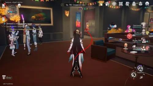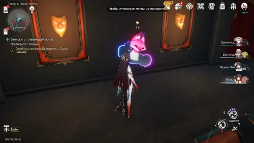 Телепортируйтесь к якорю «Убийственная шутка» на 2-м этаже таверны, а потом бегите по коридору на восток и сверните два раза влево, оказавшись на сцене театра. Пройдите к задним трибунам, и вы увидите тут розовую лисичку – взаимодействуйте с ней для начала испытания.