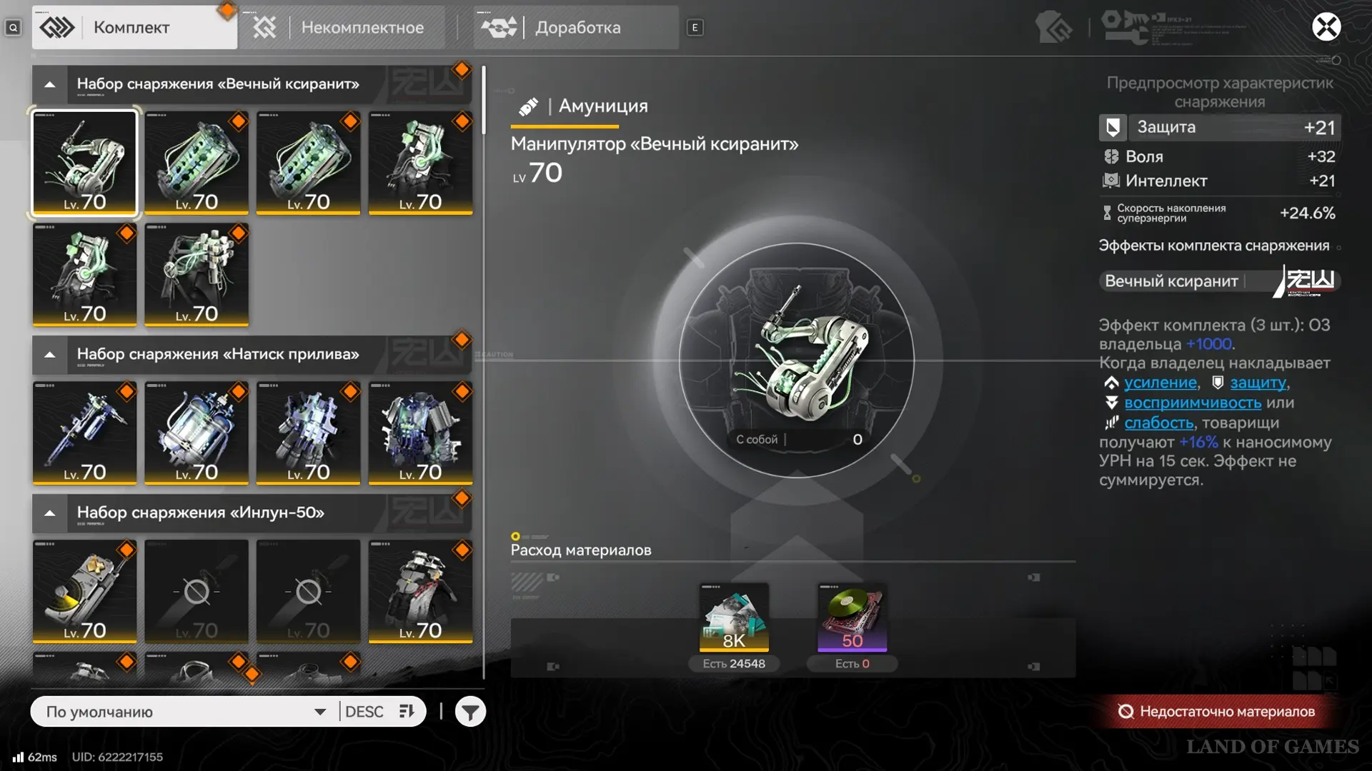 - Шаблоны комплектов: весь набор «Натиск прилива» + манипулятор «Вечный ксиранит».