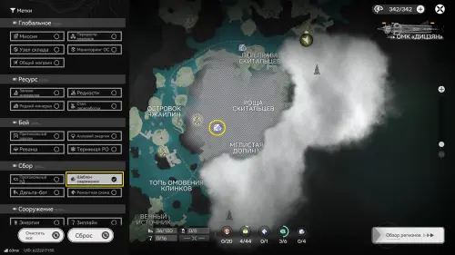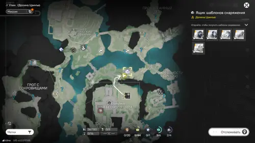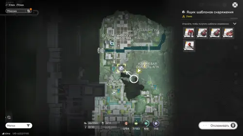 Откройте карту и выберите «Метки» в левом нижнем углу экрана, а после отсортируйте по категории «Сбор» → «Шаблоны снаряжения», чтобы увидеть и отслеживать местоположение каждого хранилища.