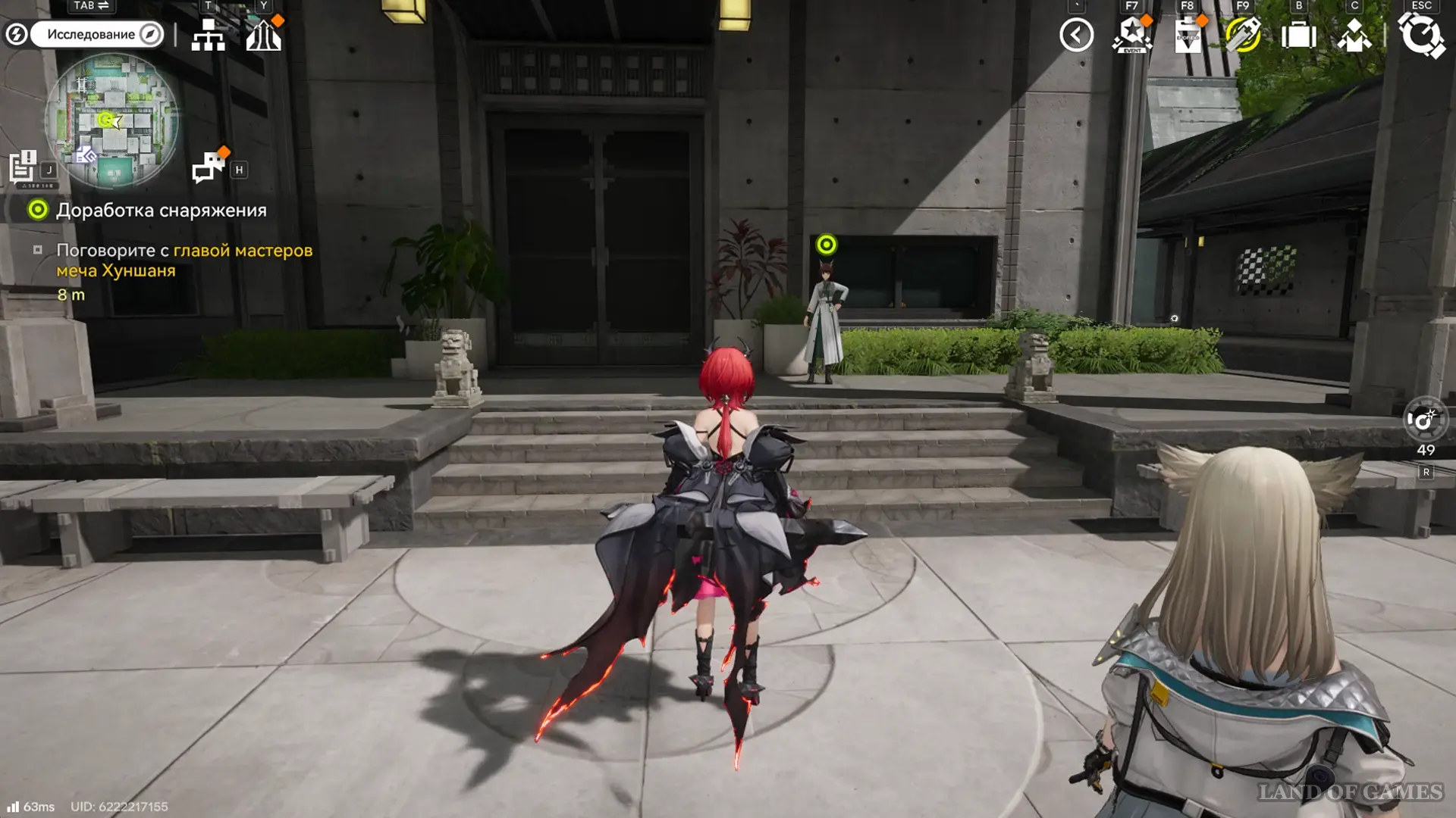 Переместитесь к точке телепорта перед Кабинетом в Основном столбе (запад локации), затем направляйтесь на север, к Бюро мастеров мечей, и поговорите с Лянь Сяоу — главой Хуншаня. Мастер расскажет о возможностях доработки снаряжения, после чего вам станет доступно интерактивное обучение, подробно объясняющее процесс улучшения характеристик экипировки.