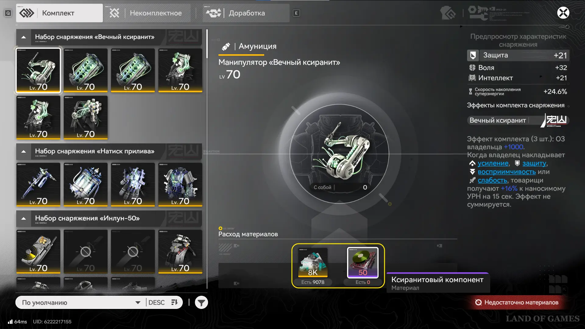 - Игрок может самостоятельно выбирать и создавать предметы из наборов снаряжения, предварительно добыв необходимые для крафта ресурсы (облигации региона и компоненты) через систему АПК;