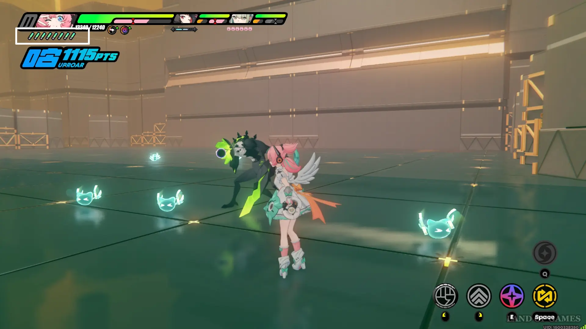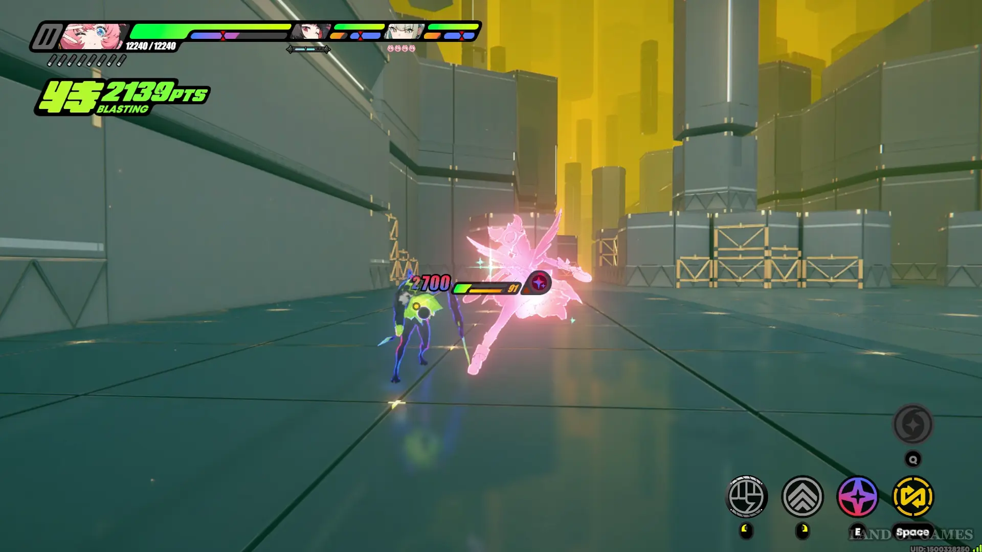 Для активации выберите этого агента, когда запущена цепочка атак. Агент выполняет серию атак перед собой, нанося огромный эфирный урон, и создает на поле 4 Флюида поддержки. При использовании умения героиня неуязвима.