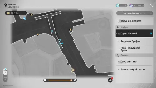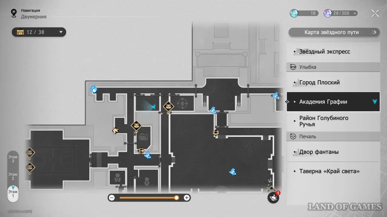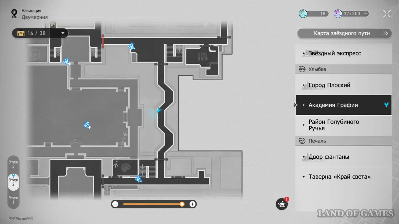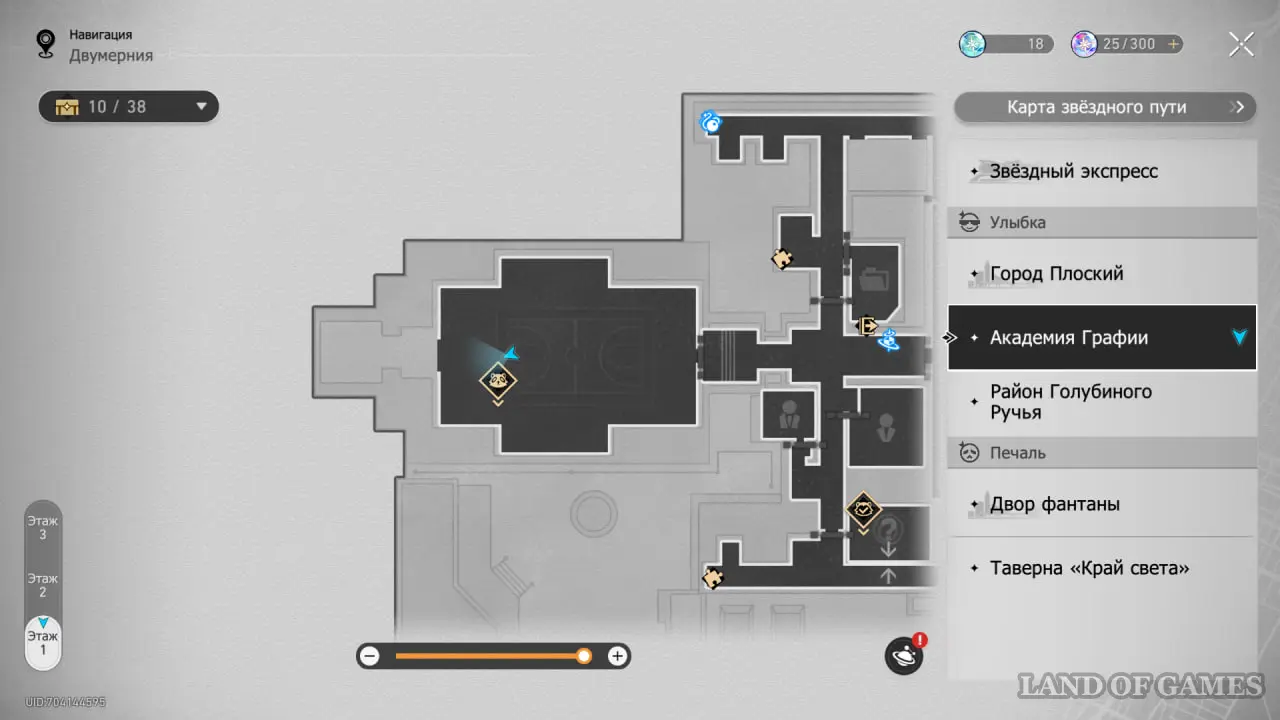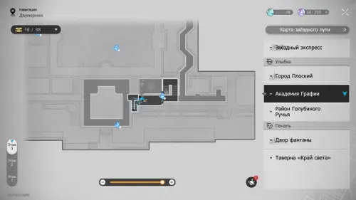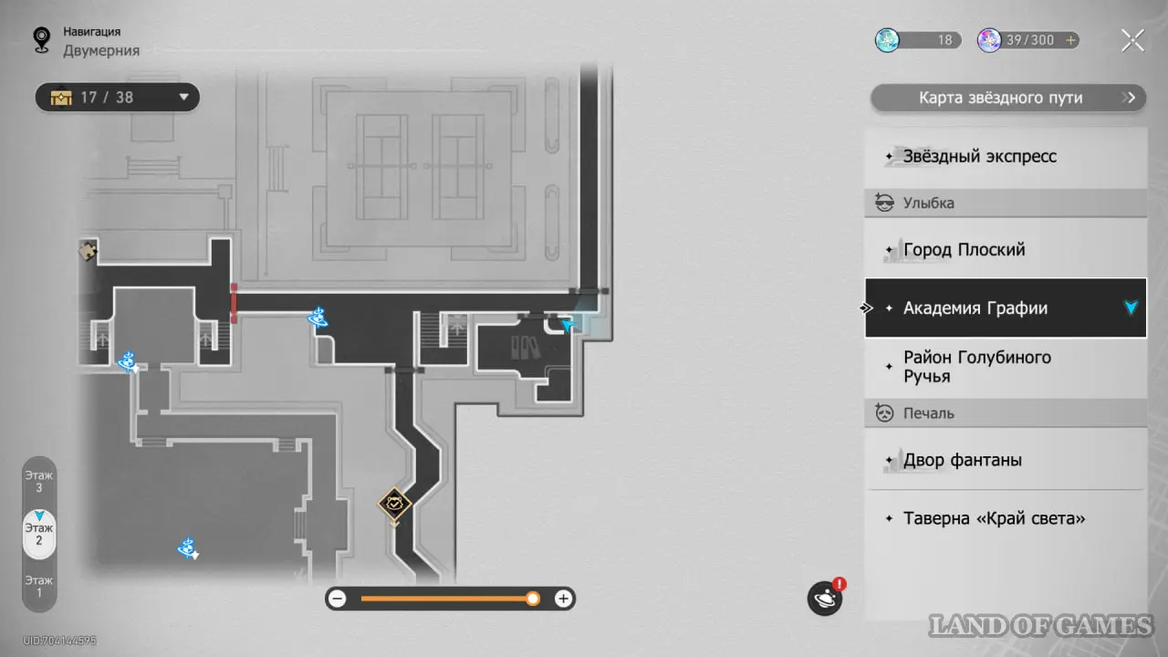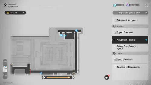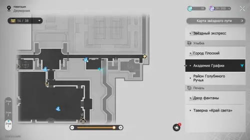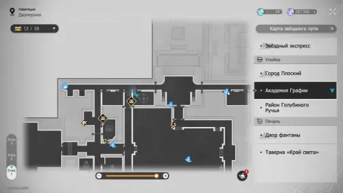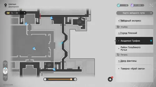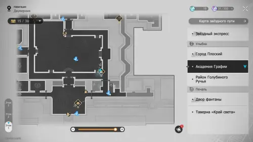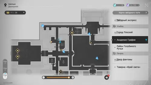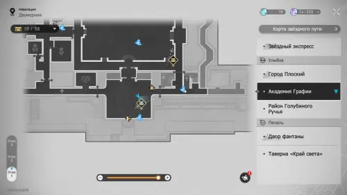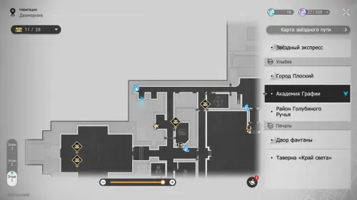 В этой локации игровой автомат расположен между якорями «Холл учебного корпуса» и «Атриум академии».