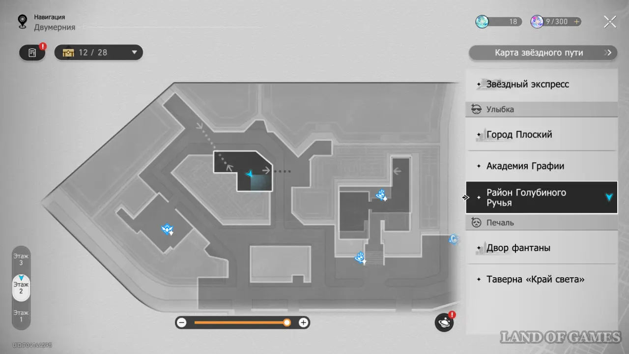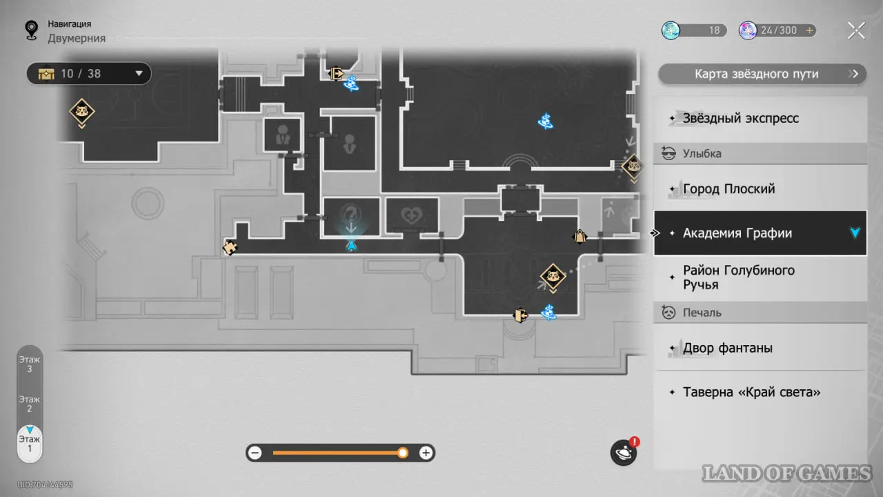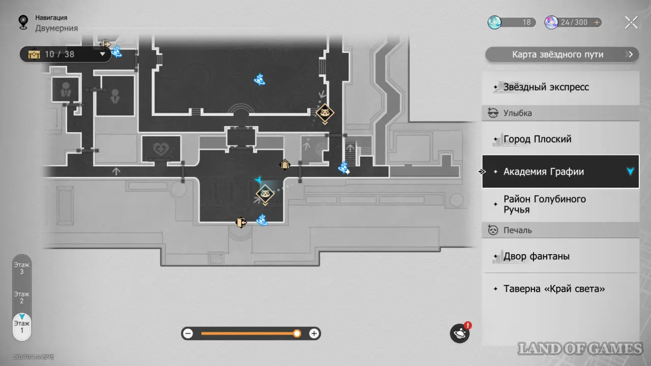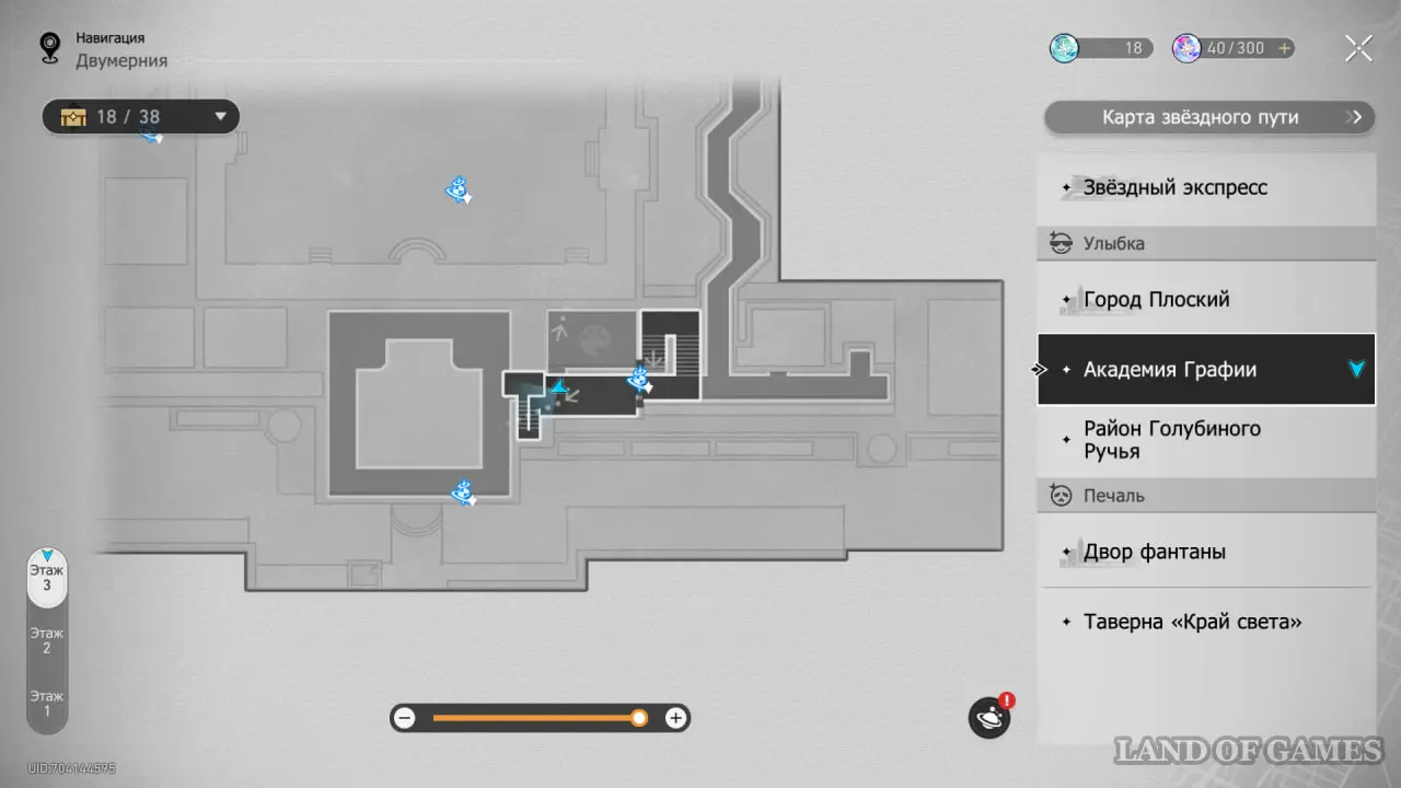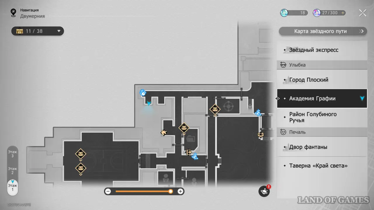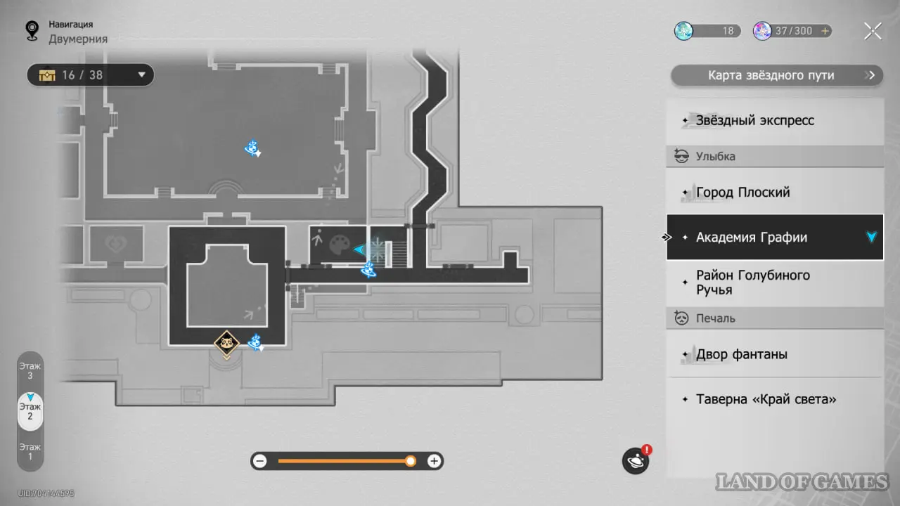 В этой локации игровой автомат расположен между якорями «Холл учебного корпуса» и «Атриум академии».
