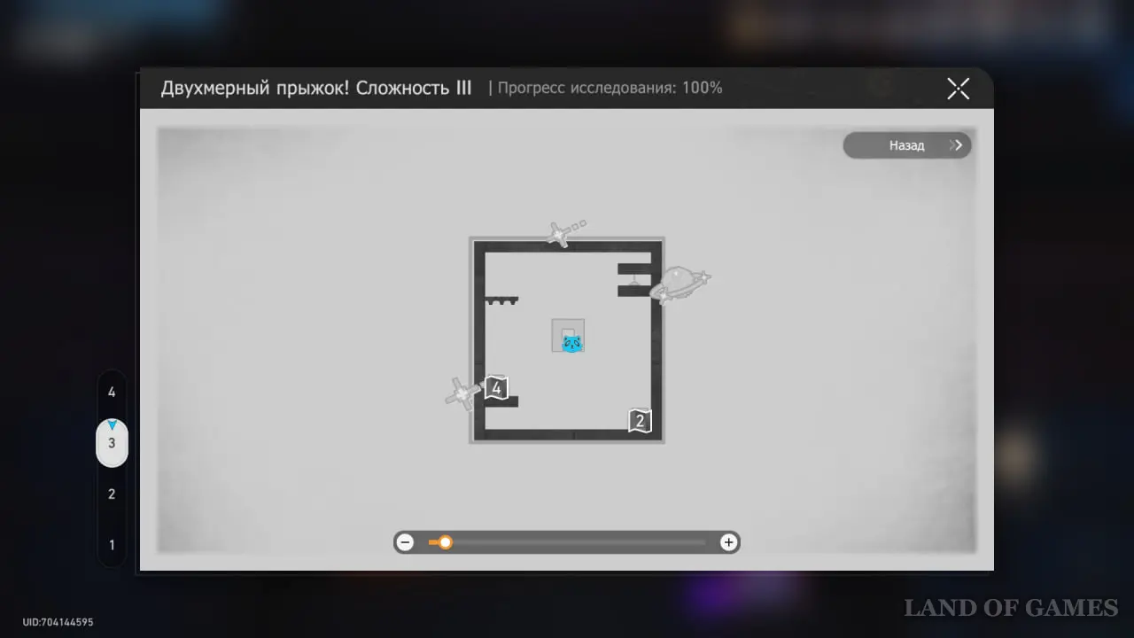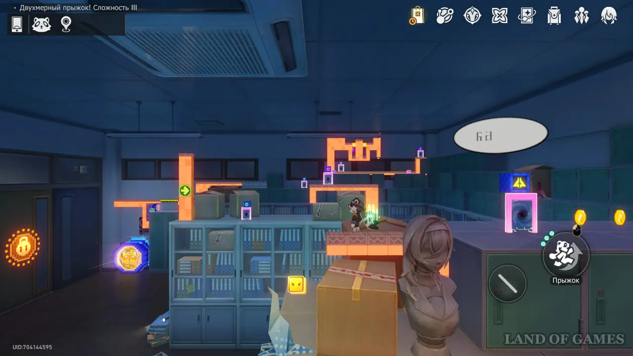 Зайдите в класс на востоке от холла учебного корпуса и войдите в Двухмерный прыжок и доберитесь до цифры 4.