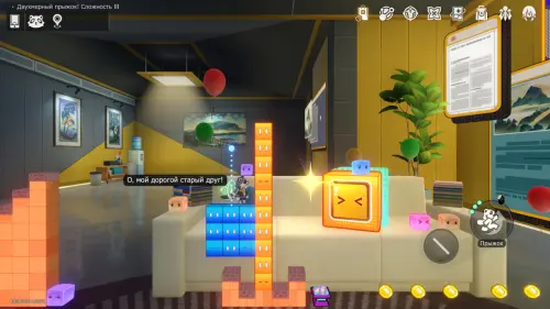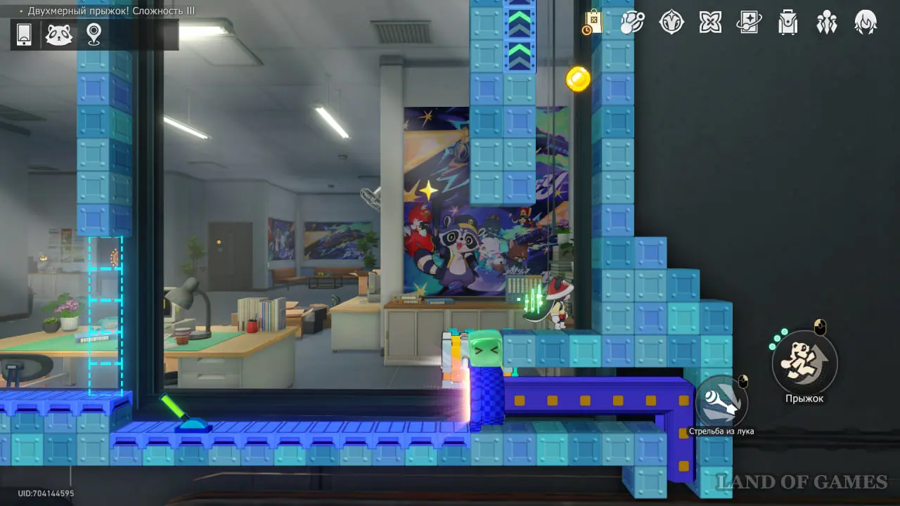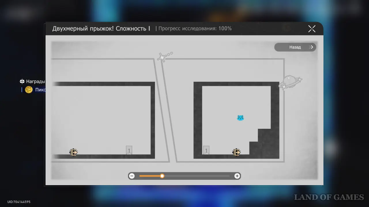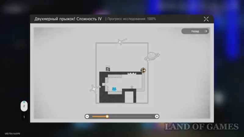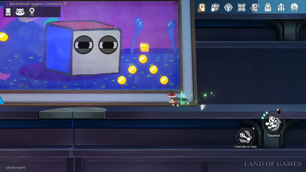 Войдите в Двухмерный прыжок на 3 этаже той же локации и поймайте Звезду спокойствия на картине с серым кубом.