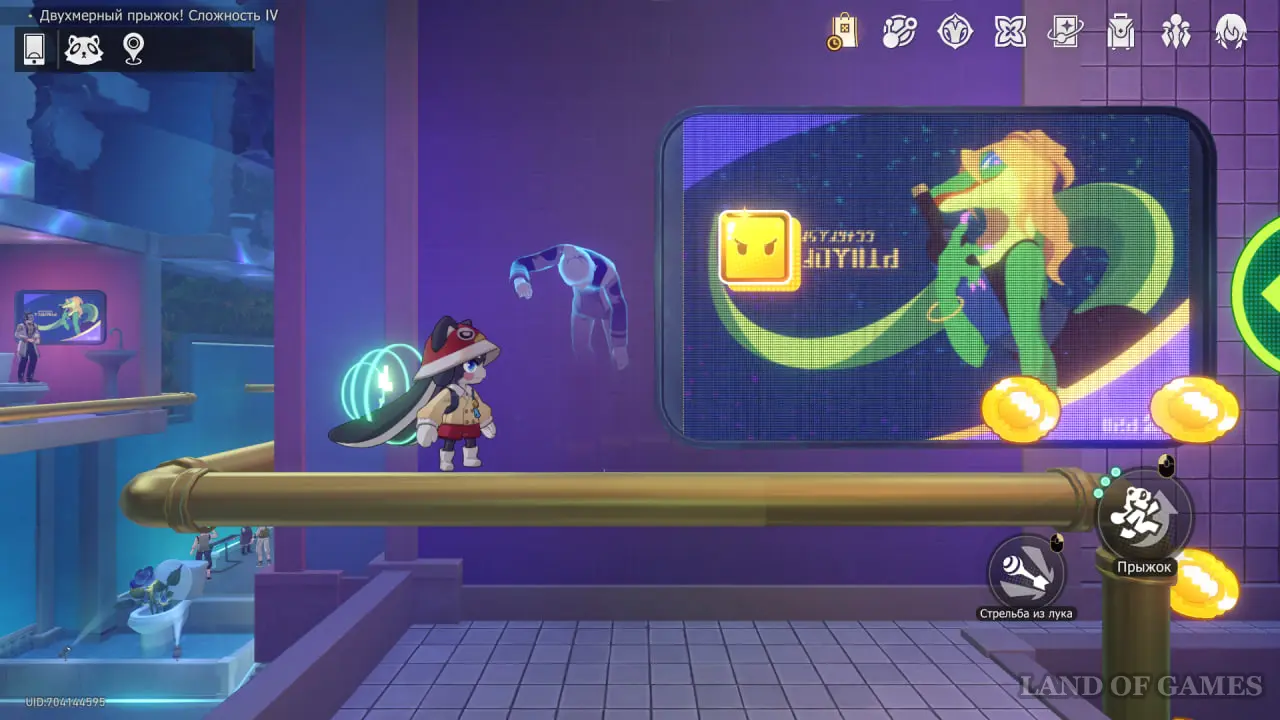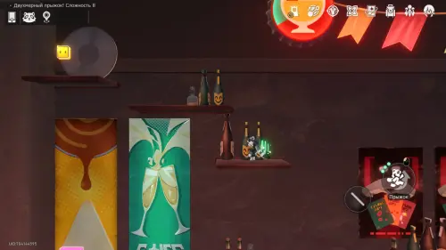 Отправляйтесь в лобби таверны и войдите в Двухмерный прыжок. Используйте тройные прыжки, чтобы подняться по полкам с бутылками и добраться до Звезды полета.