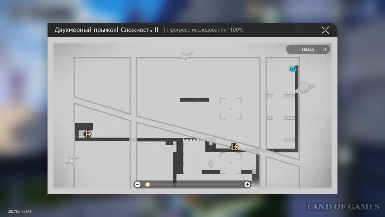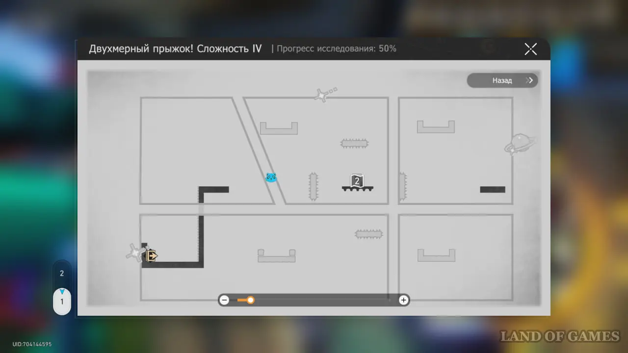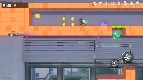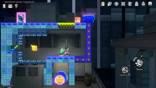 В том же прыжке используйте телепорт под эфемером и бегите налево, пройдя небольшое испытание с шипами. Звезда вовлеченности расположилась над выходом из 2D-мира.
