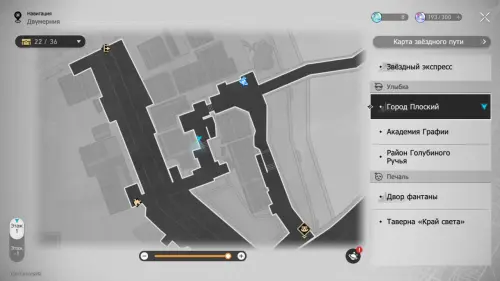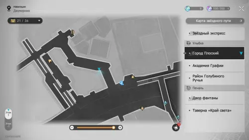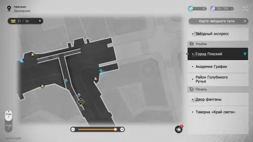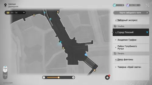 От предыдущего эфемера направляйтесь на запад, к минимаркету. На севере от него войдите в Двухмерный прыжок и доберитесь до самого верха экрана. Здесь вы найдете Звезду досуга и заодно получите ачивку «На пике Освоения».