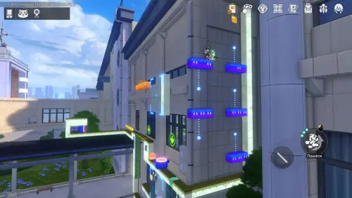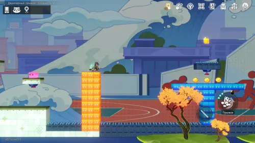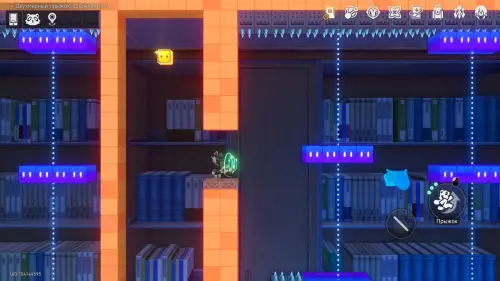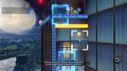 Добравшись до лестницы, бегите направо, повернув экран. Прыгните на синюю платформу и сразу же наверх, к эфемеру, пока платформа не опустилась.