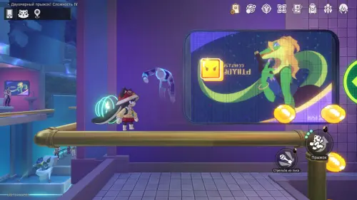Вернитесь к якорю «Класс искусств» и заберитесь на крышу, а оттуда войдите в Двухмерный прыжок. Дойдите до конца первого экрана и, минуя телепорт, заберитесь на колонну — справа увидите Звезду храбрости.