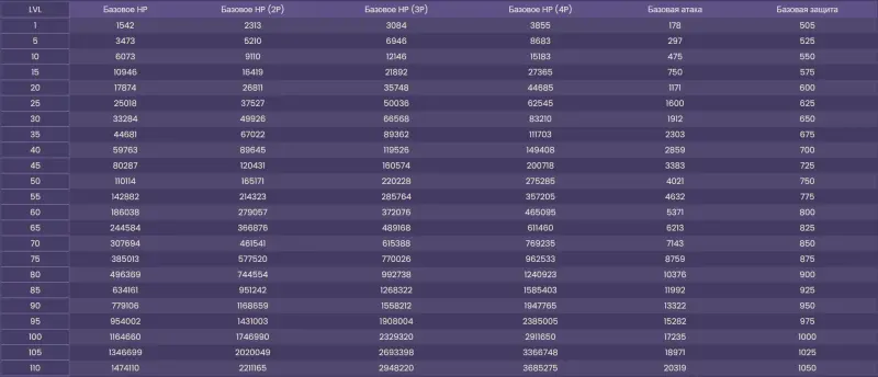 Если же говорить о боевых параметрах этого таинственного чудовища, то оно имеет довольно высокие показатели здоровья и силы атаки, которые равны или значительно превосходят аналогичные значения Чудовищного крестителя или Унут Сетеха. Например, на 90-м уровне его базовое HP составляет 779 тысяч единиц (у крестителя 371 тысяча), а АТК – 13,3 тысячи единиц (у Сетеха всего 11,2 тысячи). Ознакомиться со всеми характеристиками врага можно на изображении ниже (2P, 3P и 4P показывают параметры при игре в кооперативе).