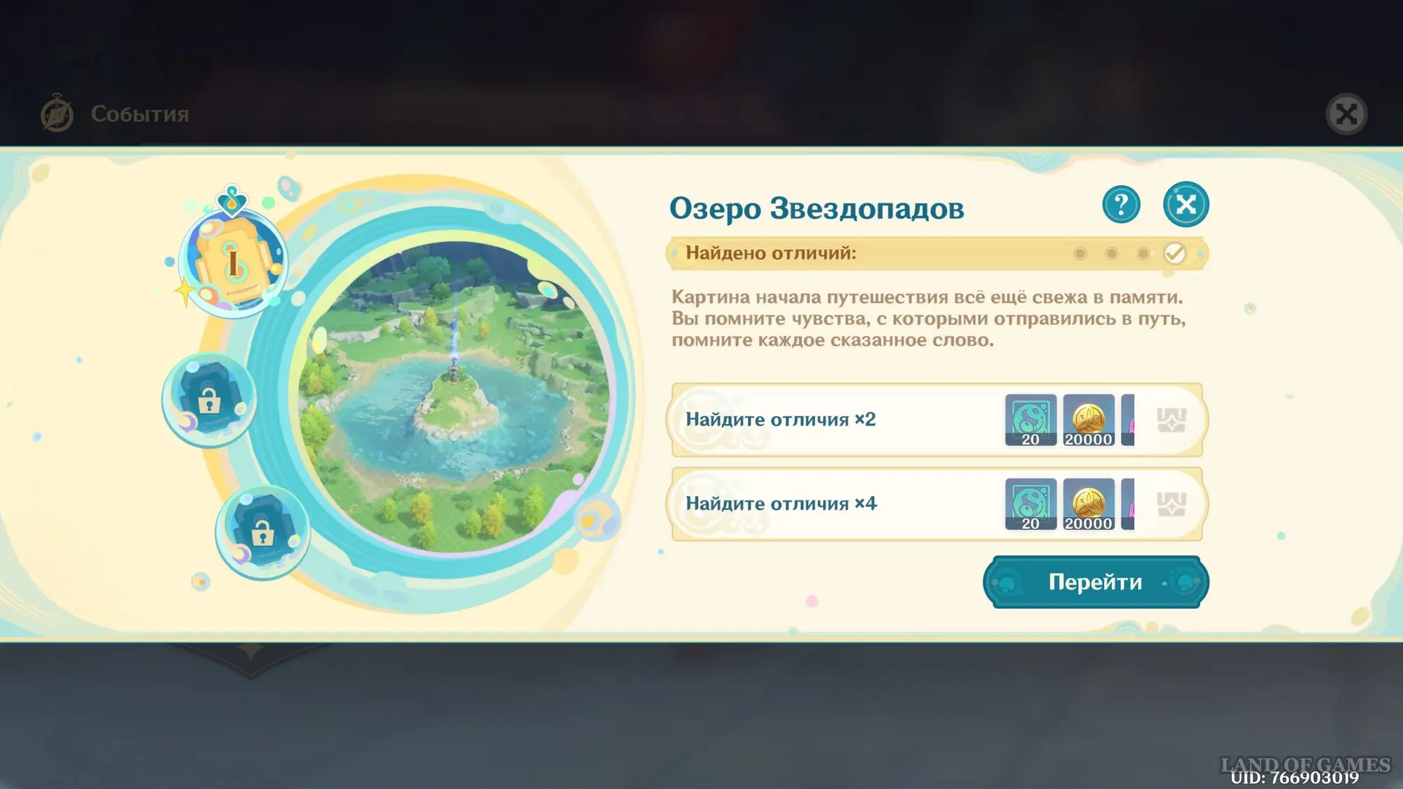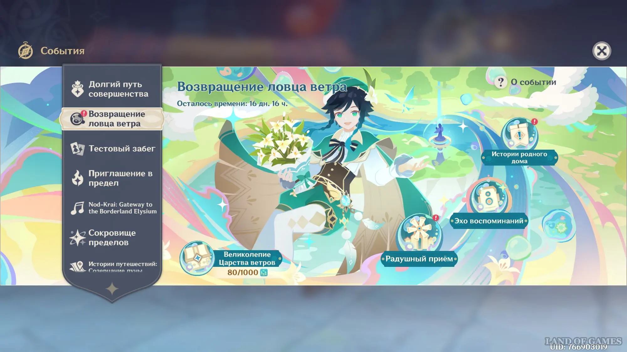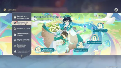 Первым делом вам нужно будет пройти сюжетное задание «Чужеземец, поймавший ветер», чтобы разблокировать доступ ко всем испытаниям главного ивента. Далее откройте его меню и нажмите на кружок «Эхо воспоминаний», чтобы перейти в новое окошко, где, собственно, и происходит выбор разных этапов испытания.