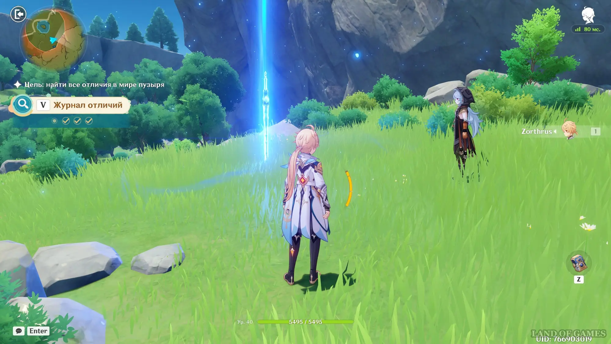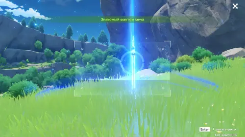 В конце идите на юго-восток (вниз) от озера, в сторону странного синего луча, который испускает некий объект на травянистом выступе. Тут вы обнаружите Рэйзора и воткнутый в землю фантом меча. Сделайте фото, а потом поболтайте с Рэйзором, чтобы узнать у него, что он тут делает.