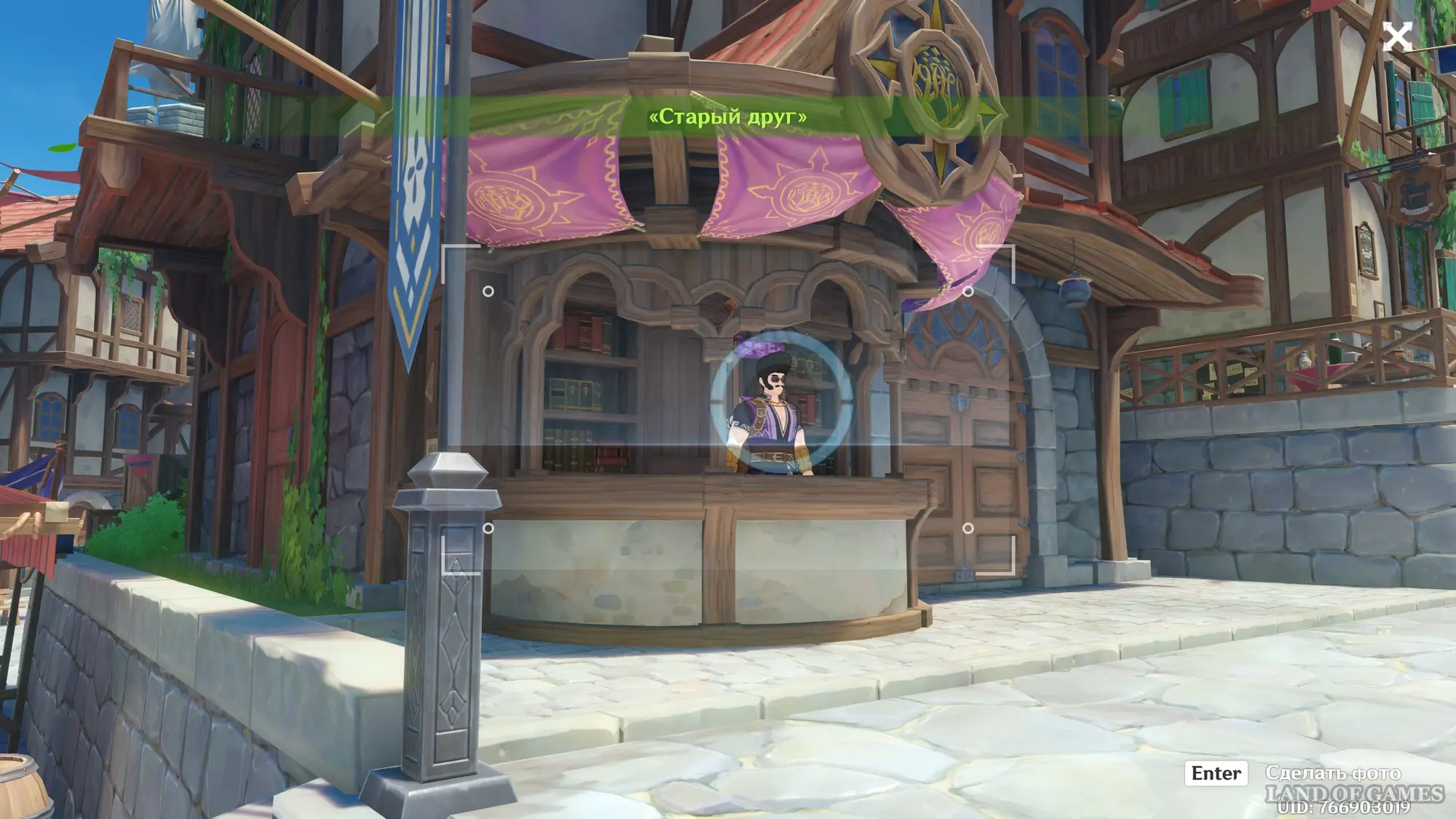 После появления в выдуманном мире, сразу же пройдите вперед и сверните влево к Гильдии искателей приключений. За прилавком вы обнаружите Ли Бэня, которого нужно сфотографировать.