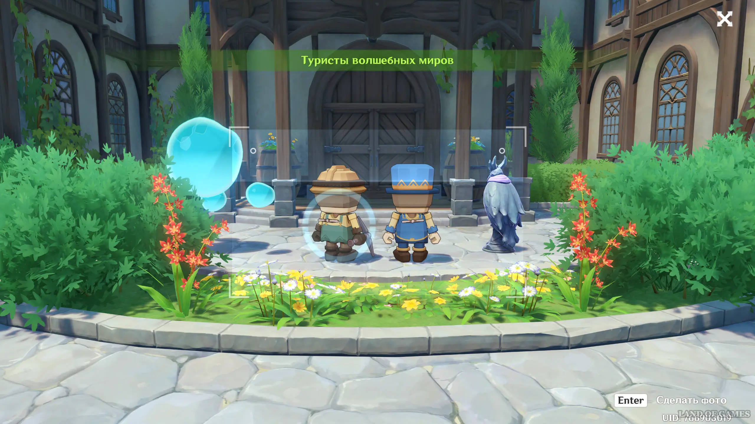 После появления в выдуманном мире, сразу же пройдите вперед к двери усадьбы и сфотографируйте группу существ из разных выдуманных миров.