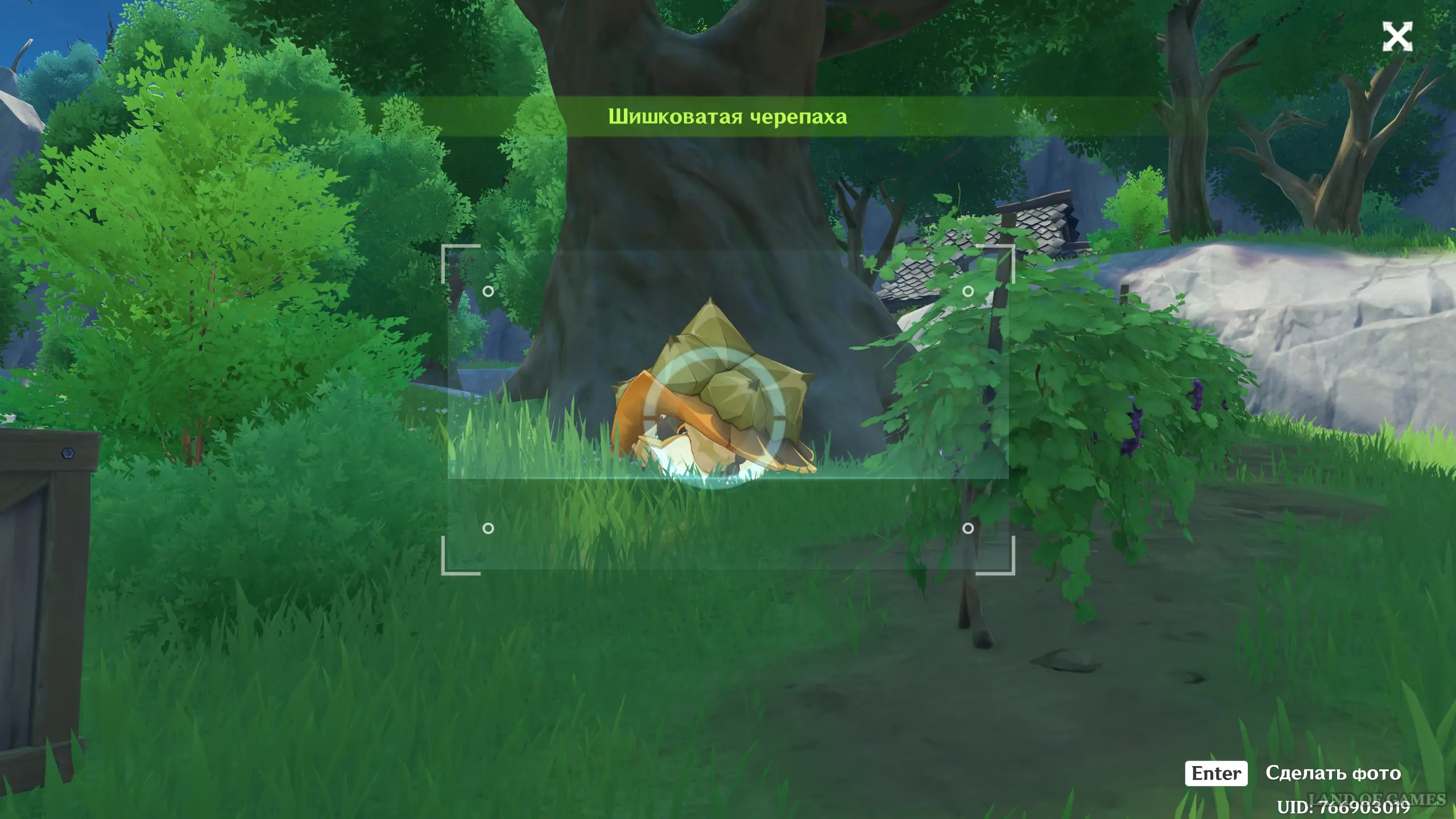 От предыдущего места сверните влево и начните бежать на восток к большому дереву впереди. У его подножья вы обнаружите черепаху, которую тоже необходимо заснять. Затем можете пообщаться с Розарией и Далией, которые появятся позади вас.