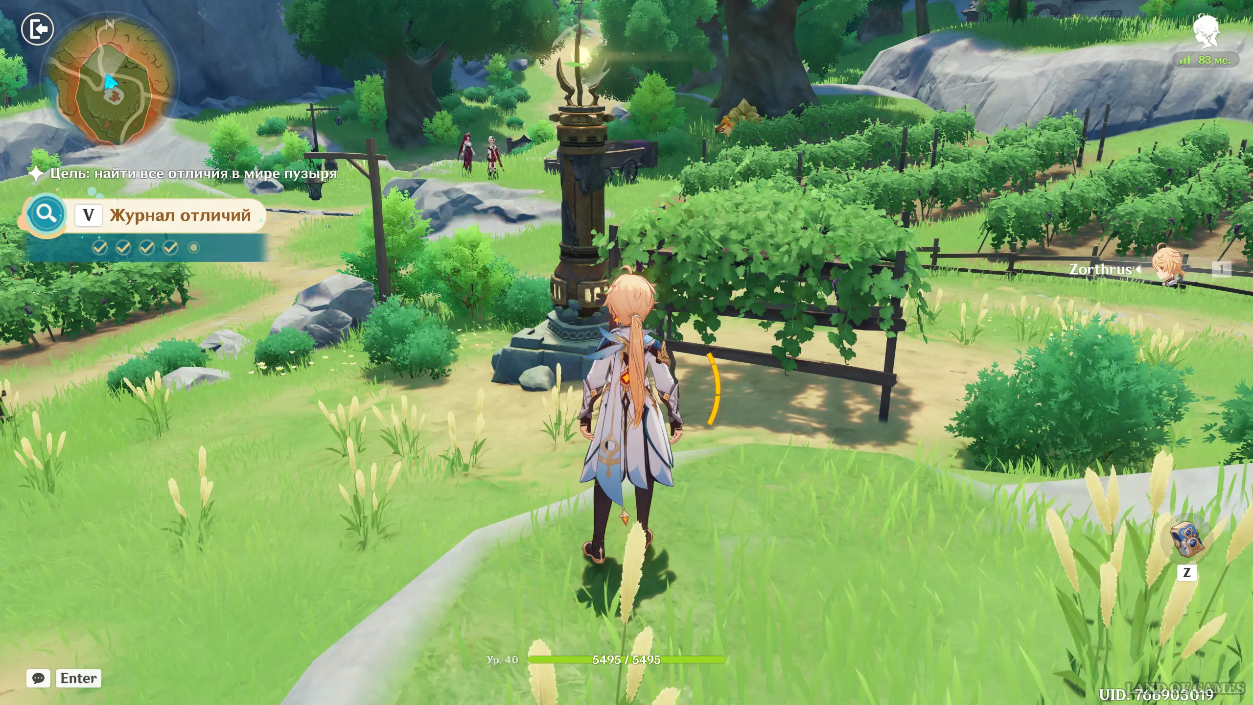 Далее снова бегите на север в сторону виноградников, и прямо между кустами вы обнаружите странный столб, который необходимо запечатлеть на фотокамеру. После этого можете побеседовать с пришедшей сюда Сахарозой.