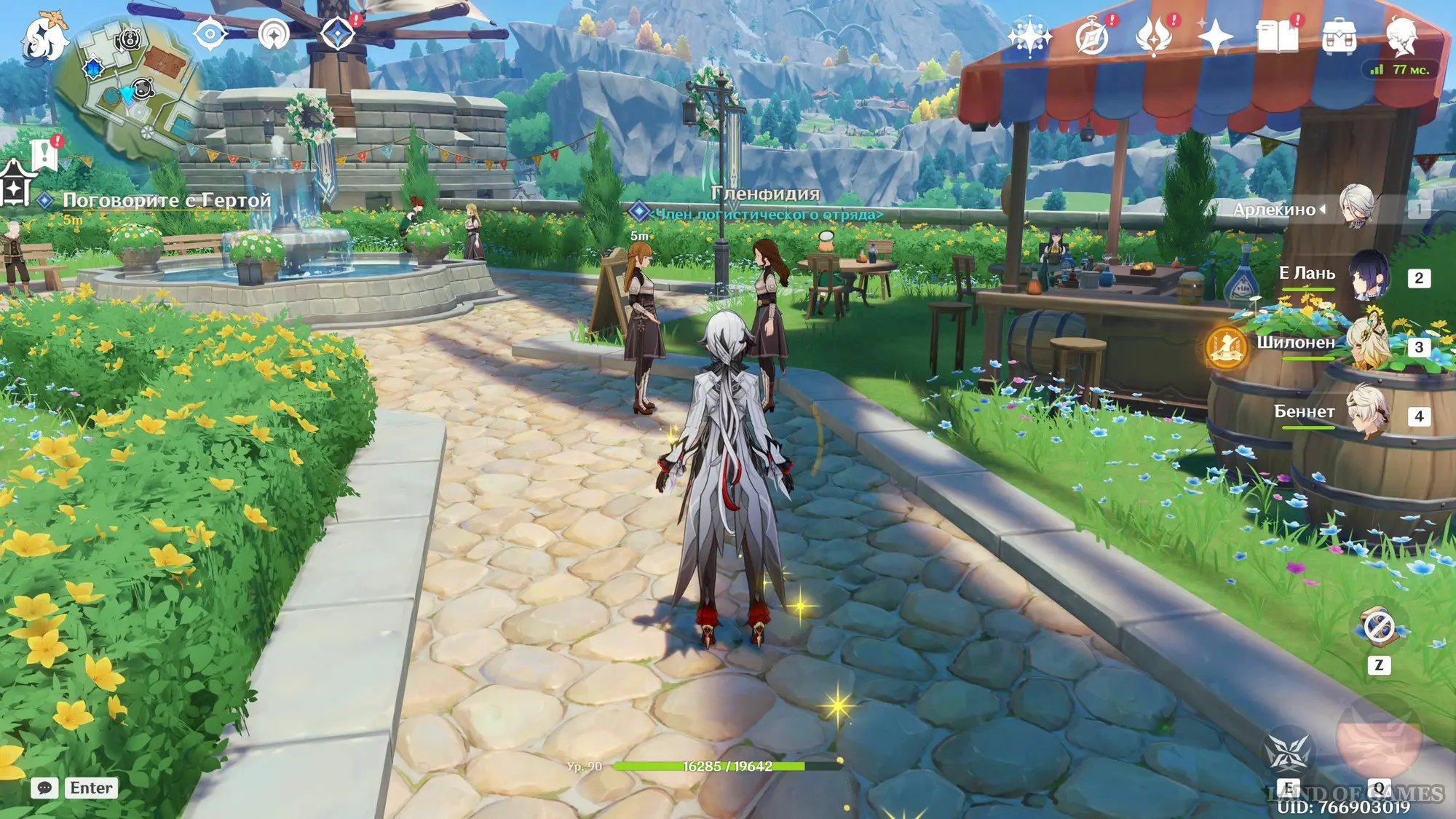 Направляйтесь к киоску с напитками и поболтайте здесь с Гертой, которая попросит вас на время занять место бармена в заведении. После вашего согласия квест подойдет к концу. В награду за его выполнение вы получите 20 тысяч моры.
