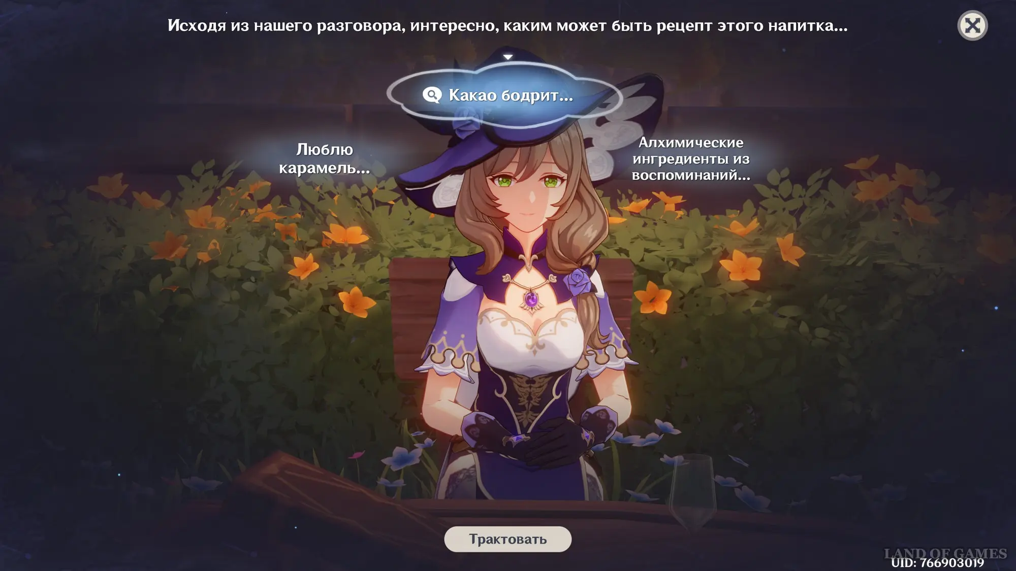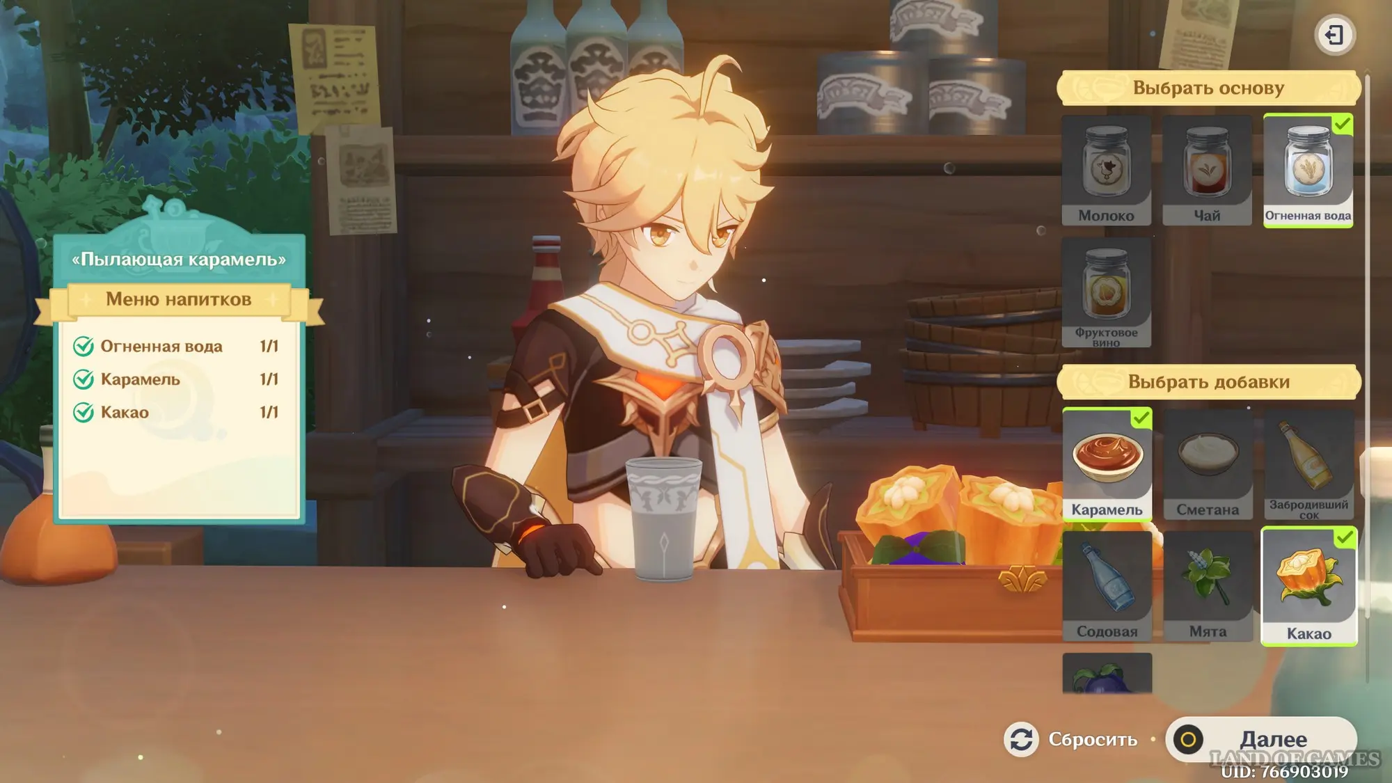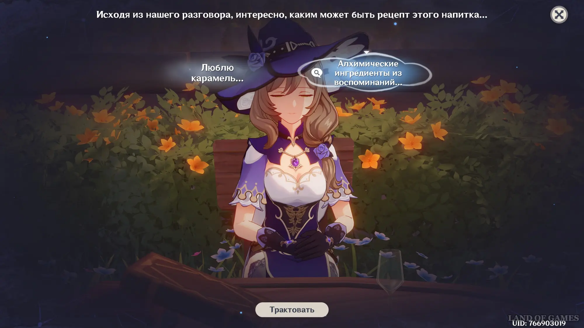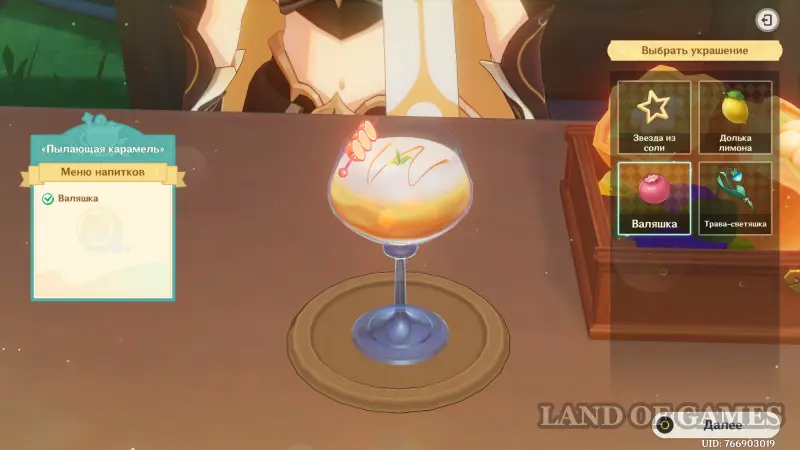 Взаимодействуйте с киоском и примитесь за прохождение второго этапа. Далее возьмитесь за приготовление напитка «Пылающая карамель» для Клоринды:
