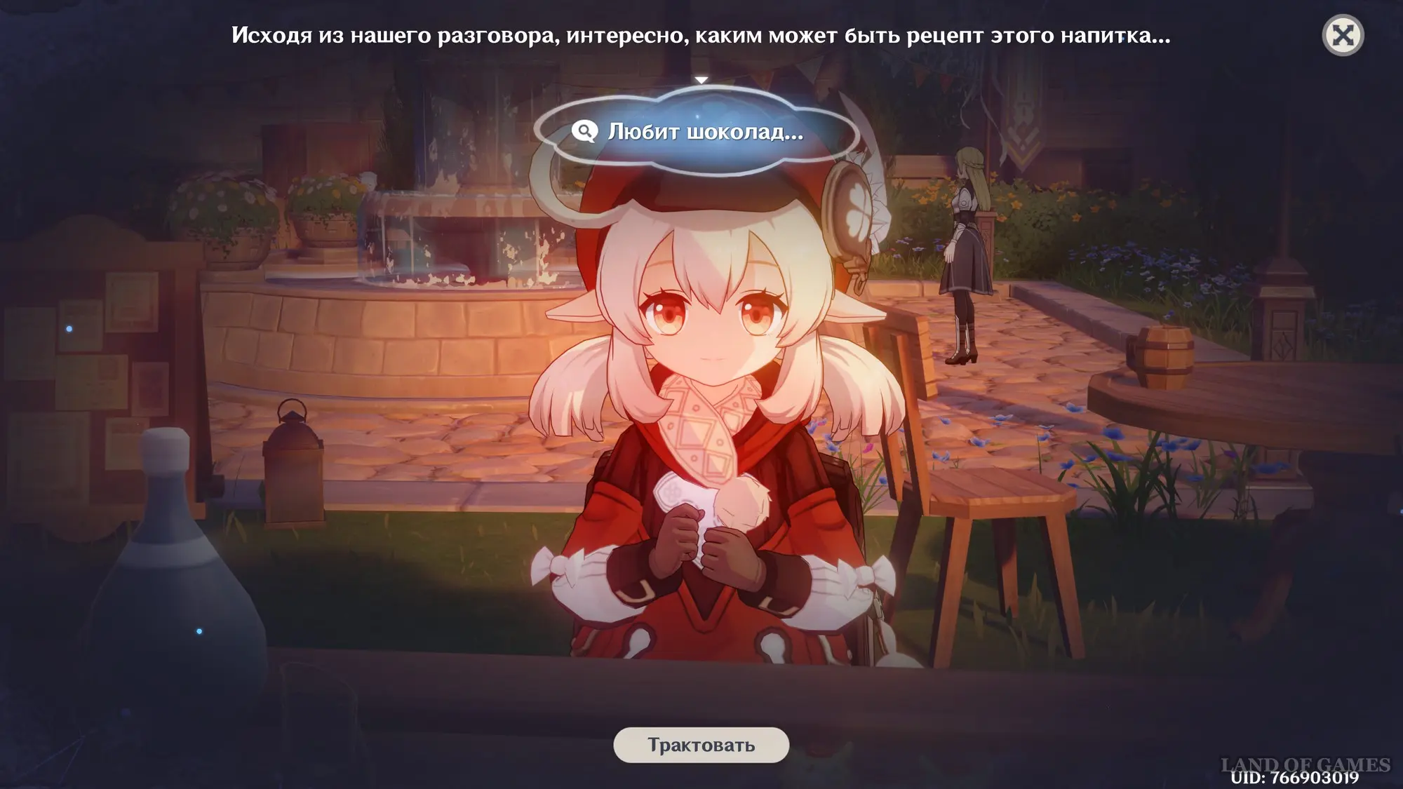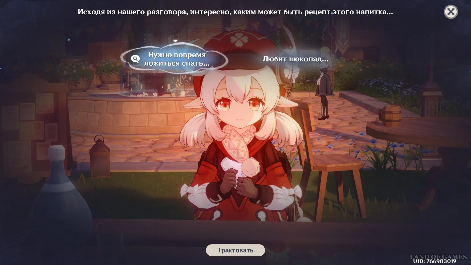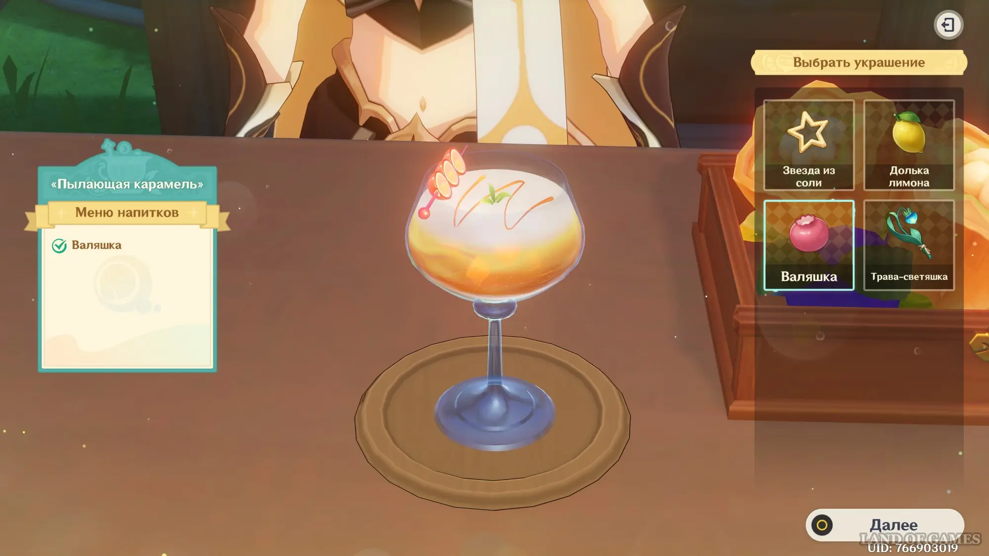 Взаимодействуйте с киоском и примитесь за прохождение второго этапа. Далее возьмитесь за приготовление напитка «Пылающая карамель» для Клоринды: