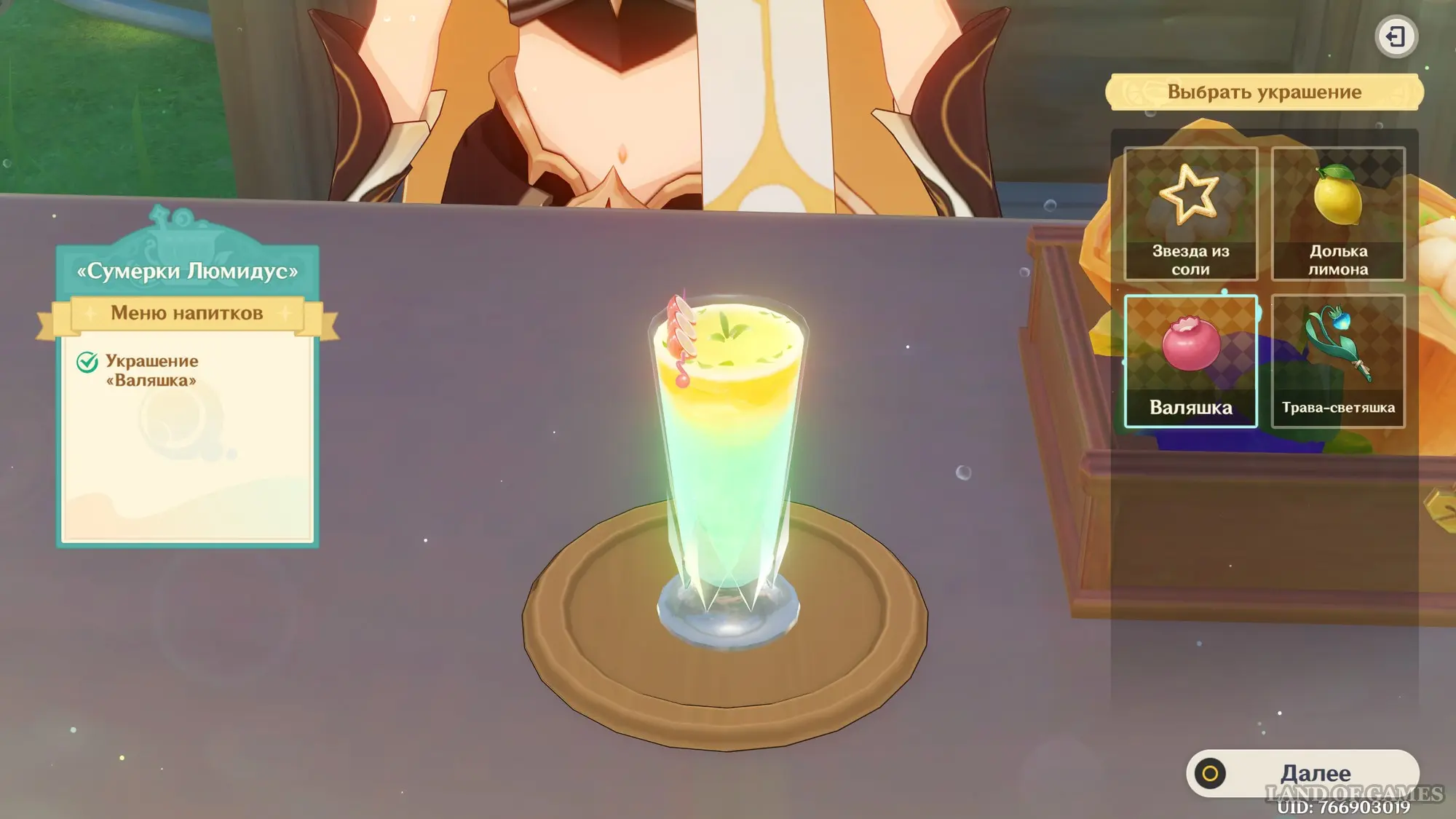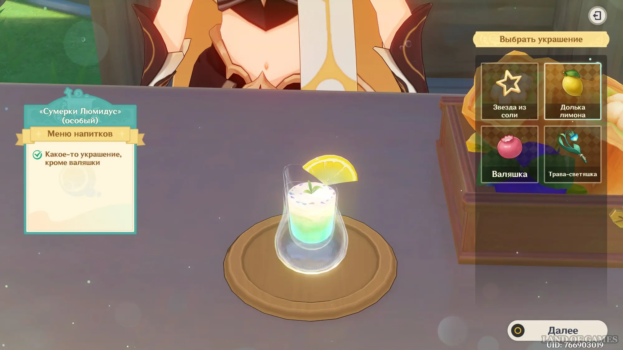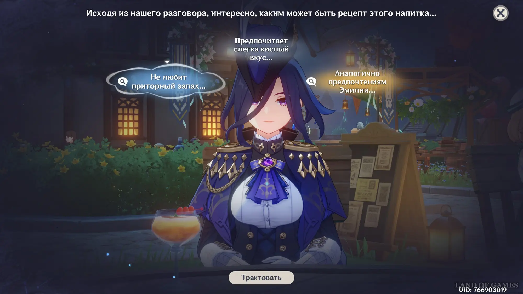 Взаимодействуйте с киоском и примитесь за прохождение второго этапа. Далее возьмитесь за приготовление напитка «Сумерки Люмидус» для Эмилии: