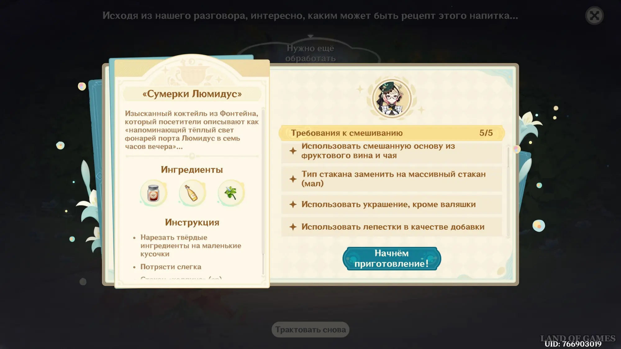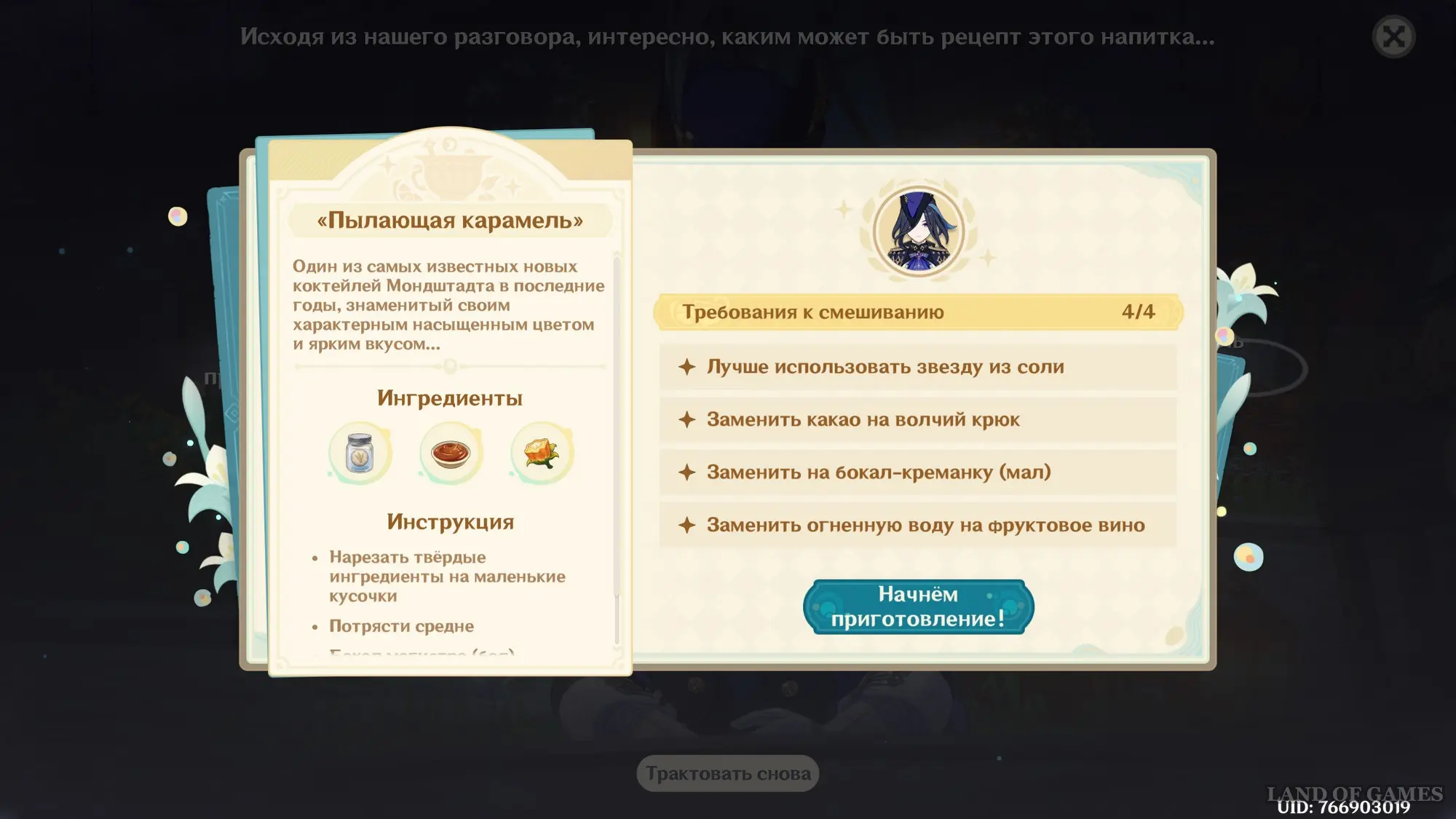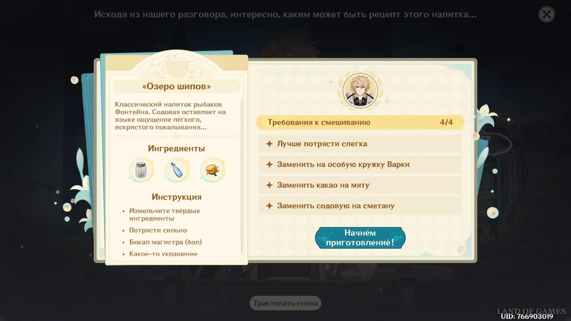 Узнав предпочтения Варки, примитесь за приготовление новой версии напитка для магистра: