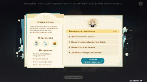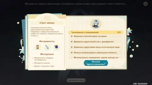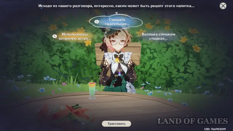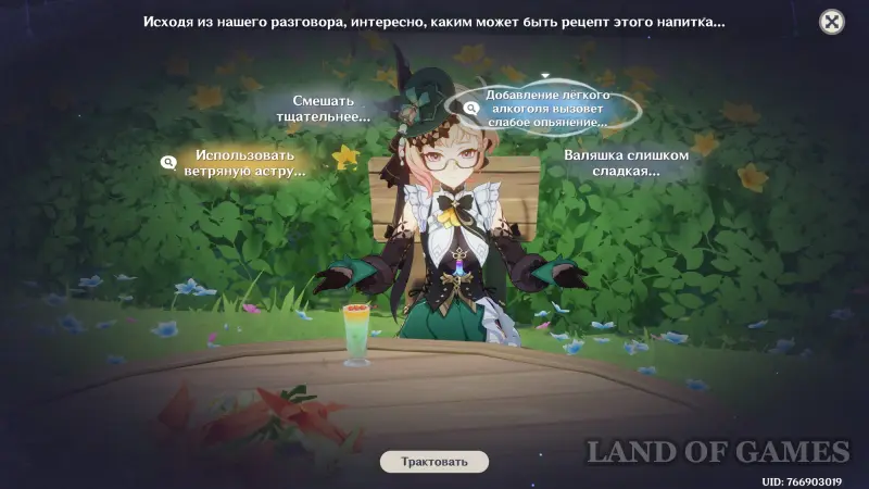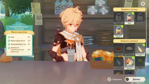 В Genshin Impact Беседа за изысканными напитками является мини-игрой обновления 6.4 (Луна V) и частью масштабного события «Возвращение ловца ветра». В ходе нее вы возьмете на себя роль бармена и будете смешивать напитки, следуя предпочтениям клиентов. Нужно также искать вдохновение, разговаривая с гостями и правильно интерпретируя их мысли. В награду вы будете получать камни истока, материалы прокачки и Великолепие Царства ветров. В этом гайде мы расскажем вам, как пройти все этапы.