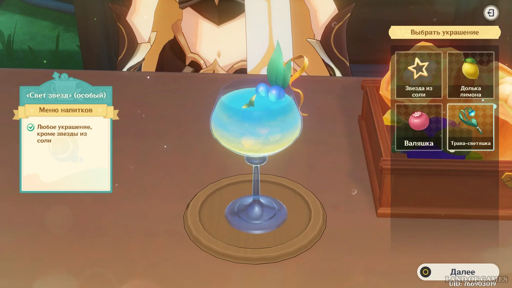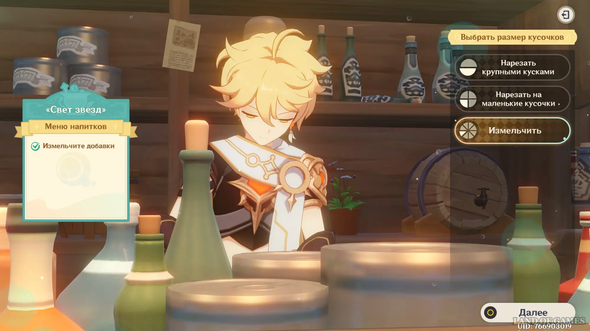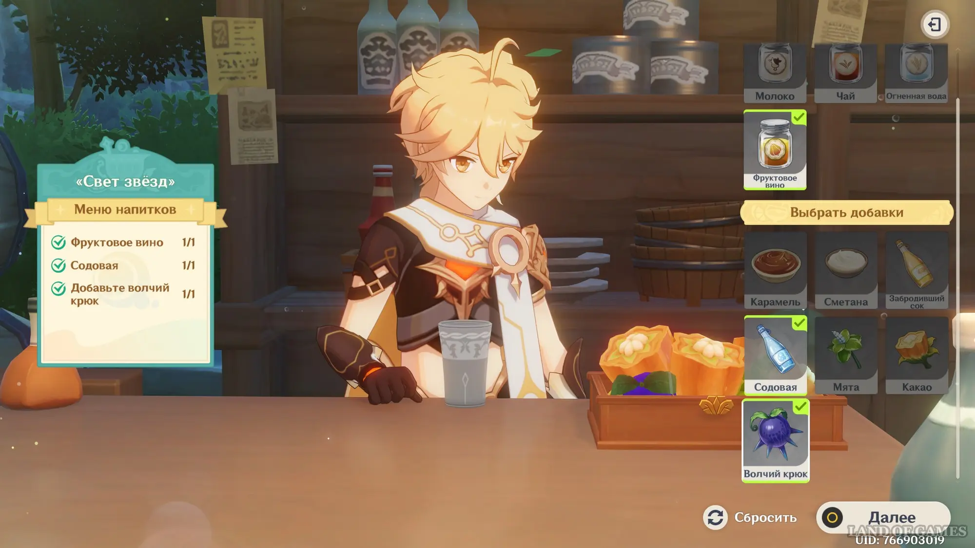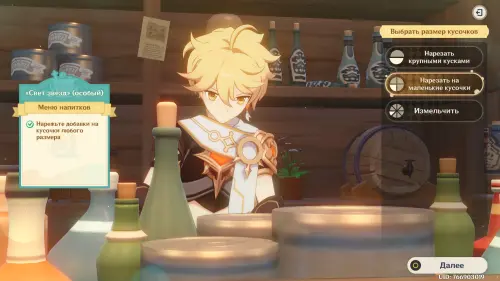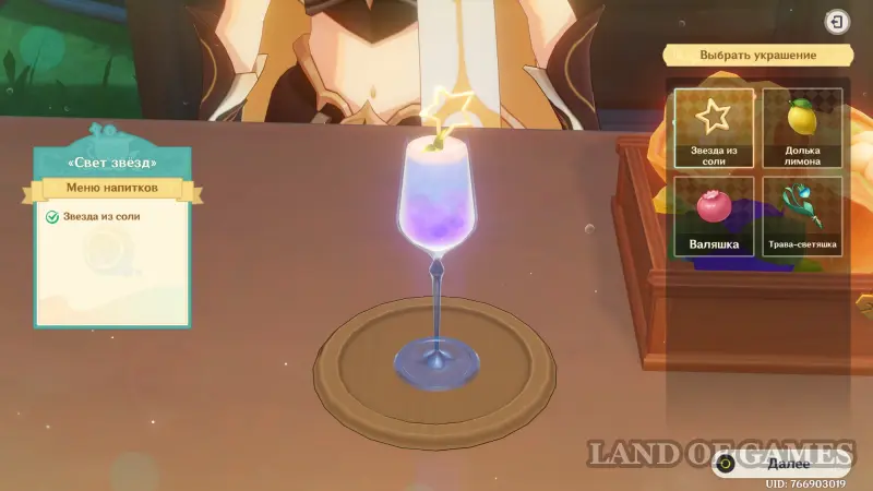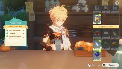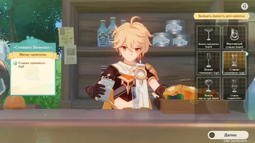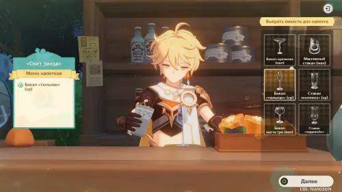 Взаимодействуйте с киоском и примитесь за прохождение второго этапа. Далее возьмитесь за приготовление напитка «Света звезд» для Эолы: