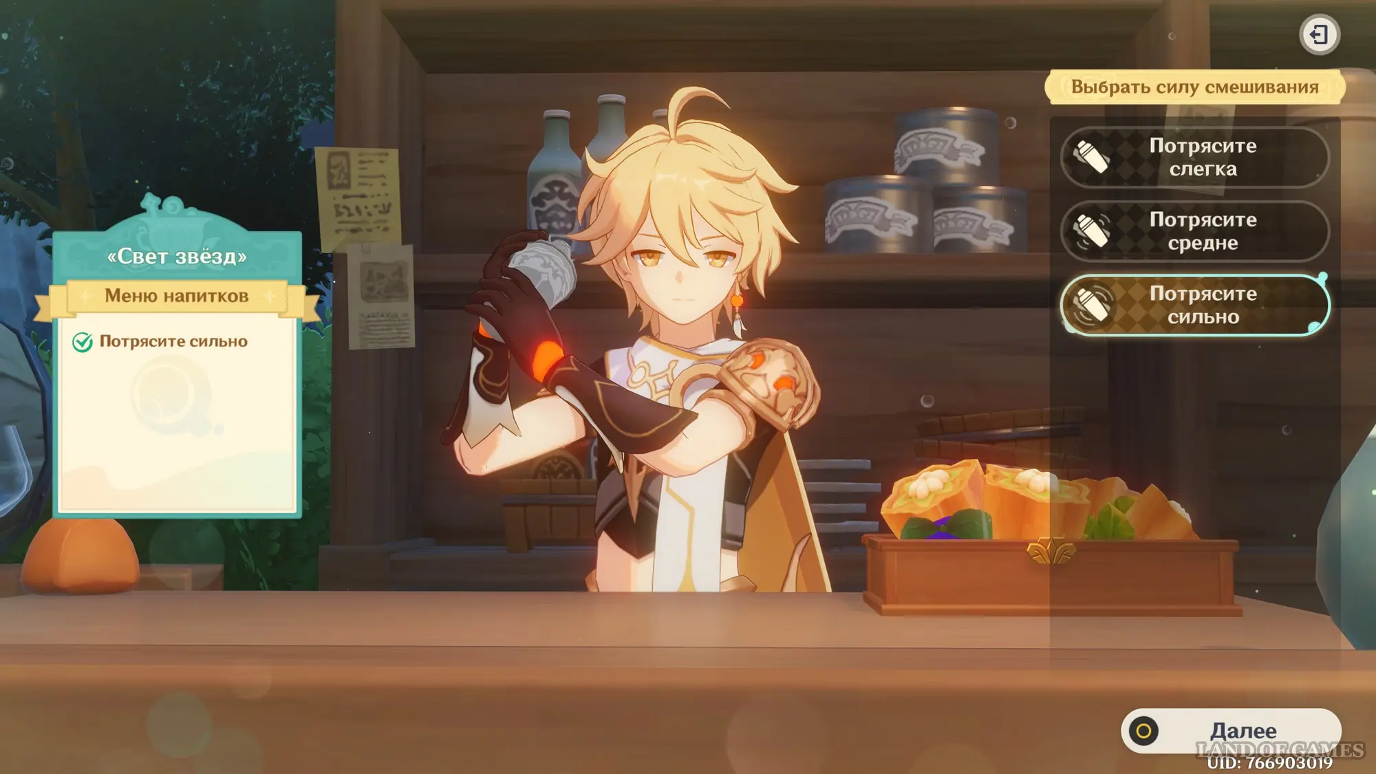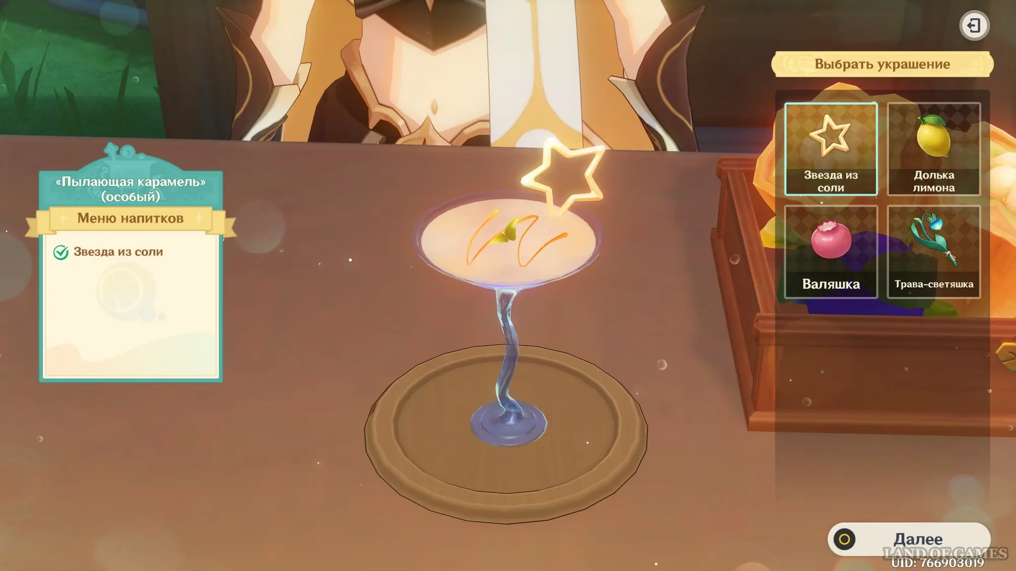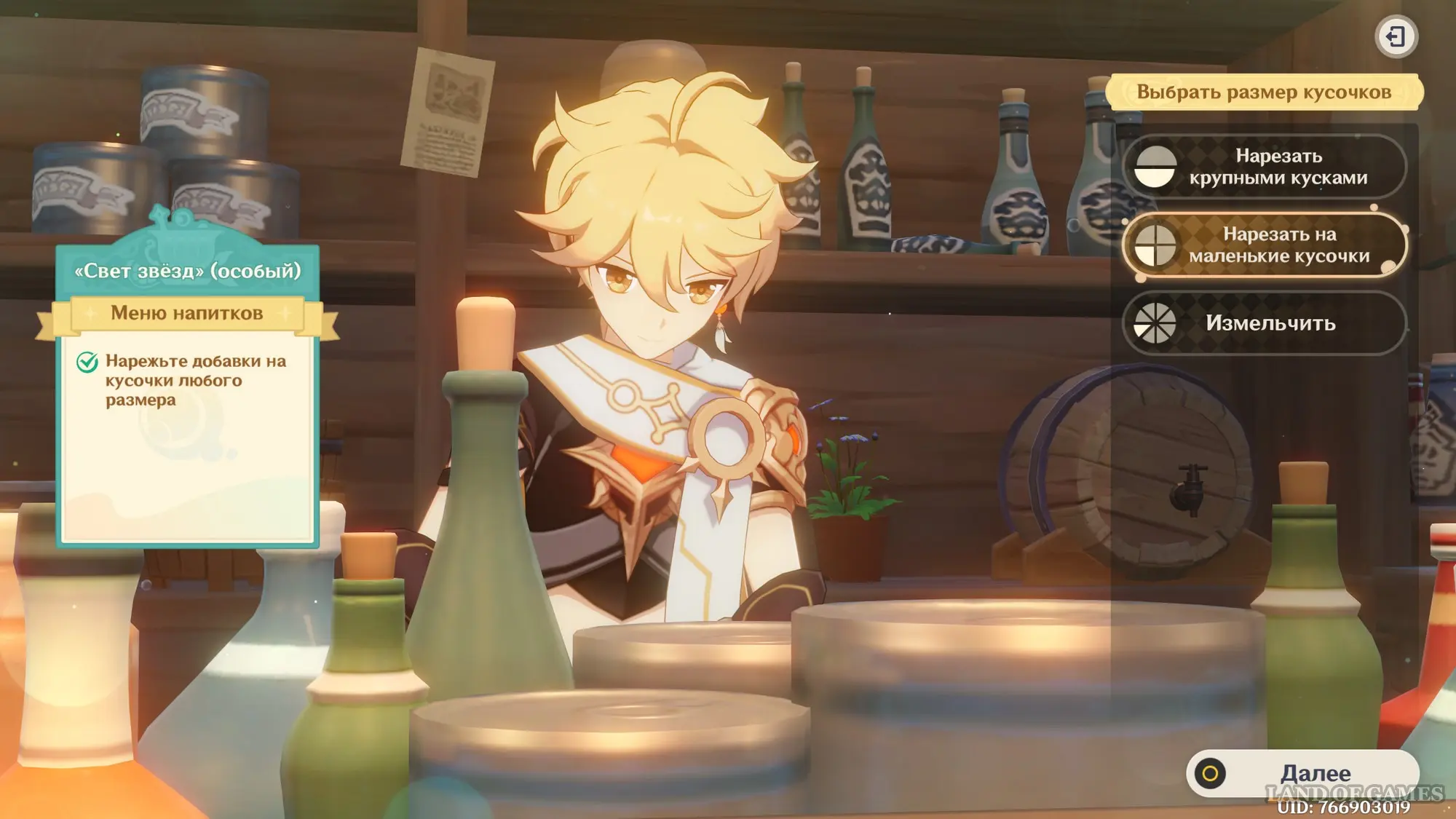 Взаимодействуйте с киоском и примитесь за прохождение второго этапа. Далее возьмитесь за приготовление напитка «Света звезд» для Эолы: