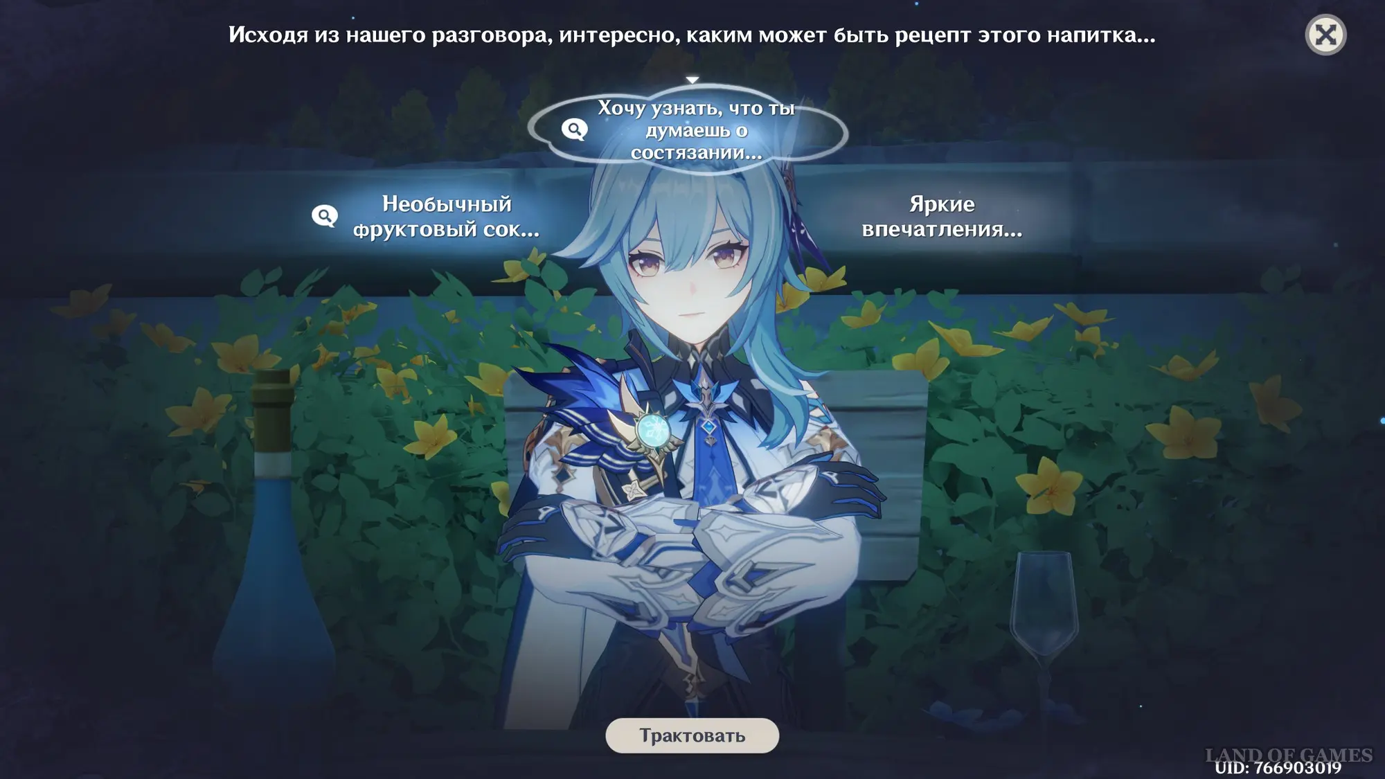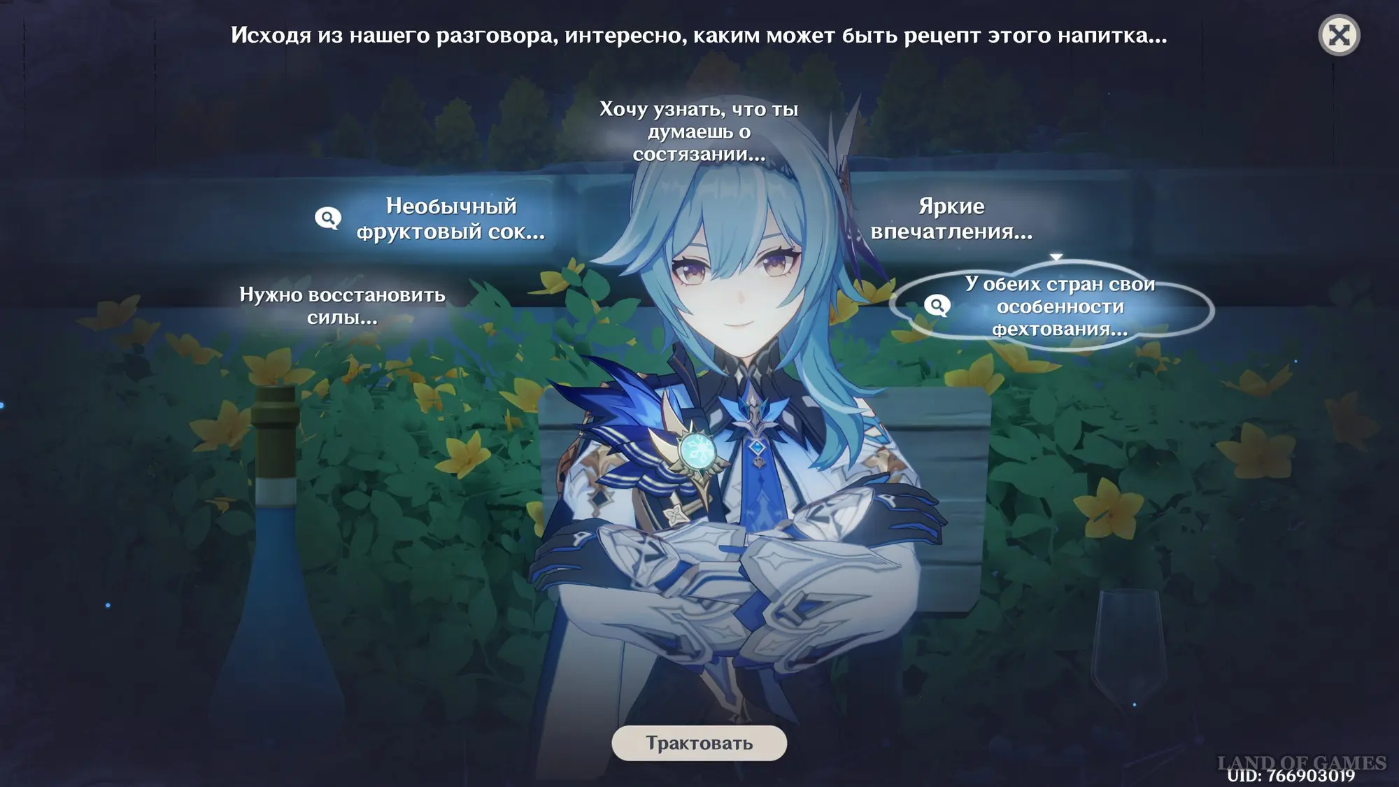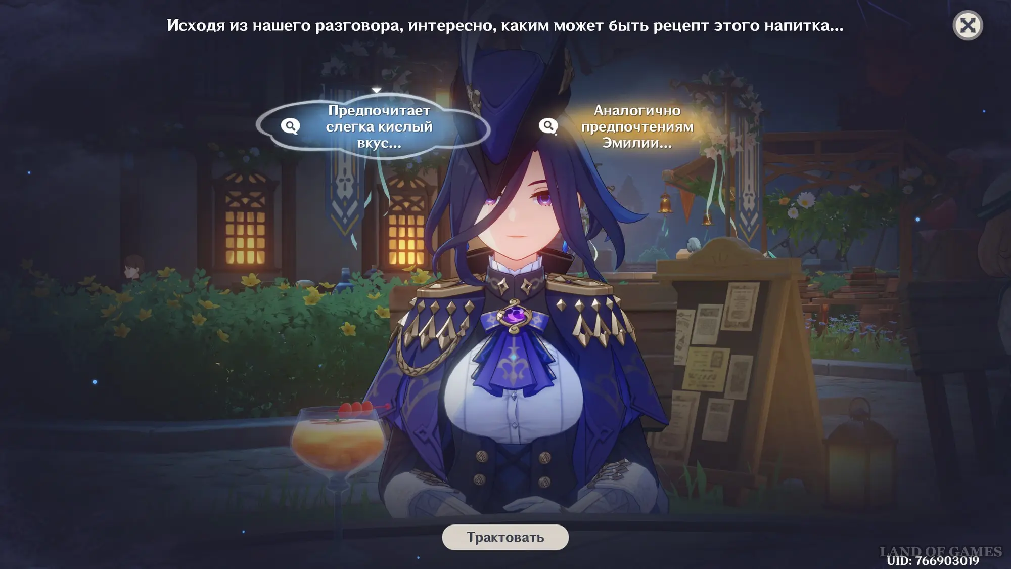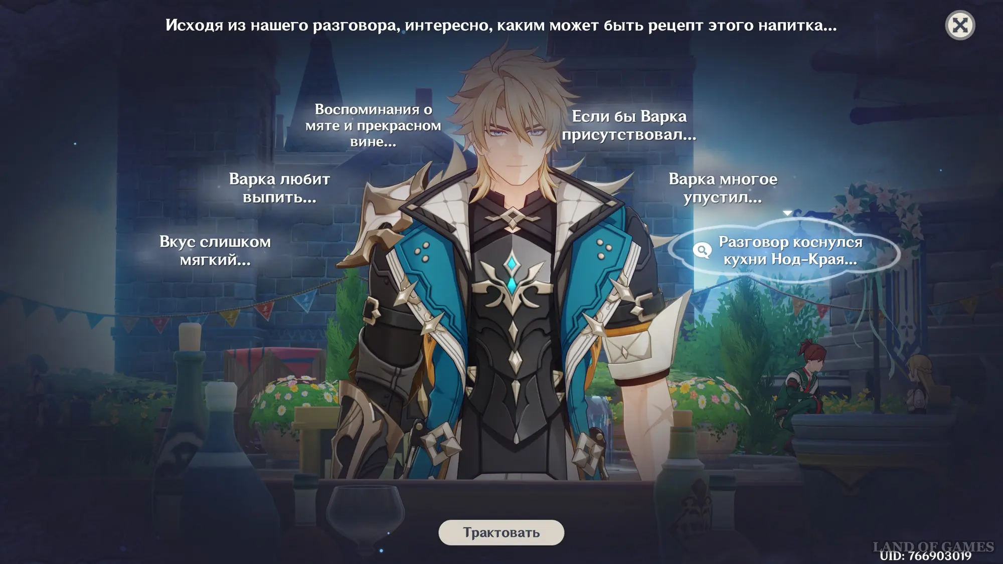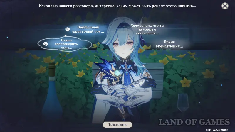 Как начать мини-игру «Беседа за изысканными напитками»